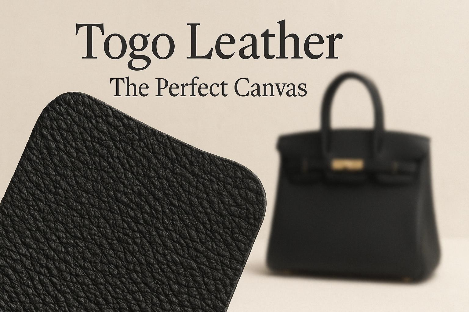 Togo leather is one of Hermès’ signature materials and a popular choice for Birkin bags. First introduced in 1997. It is made from baby bull calfskin. The leather has a slightly grainy and pebbled texture that feels unique.