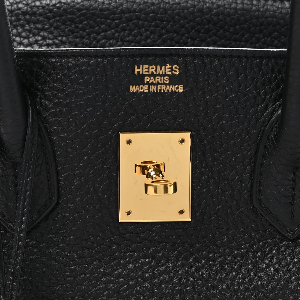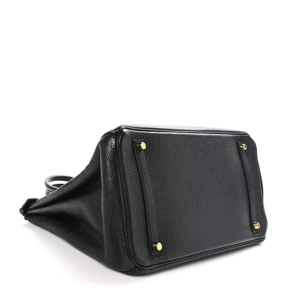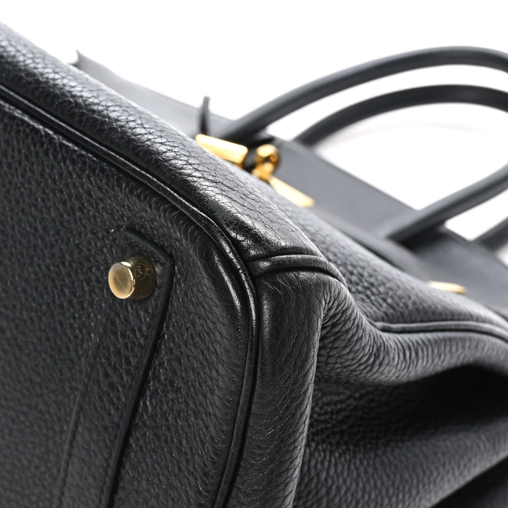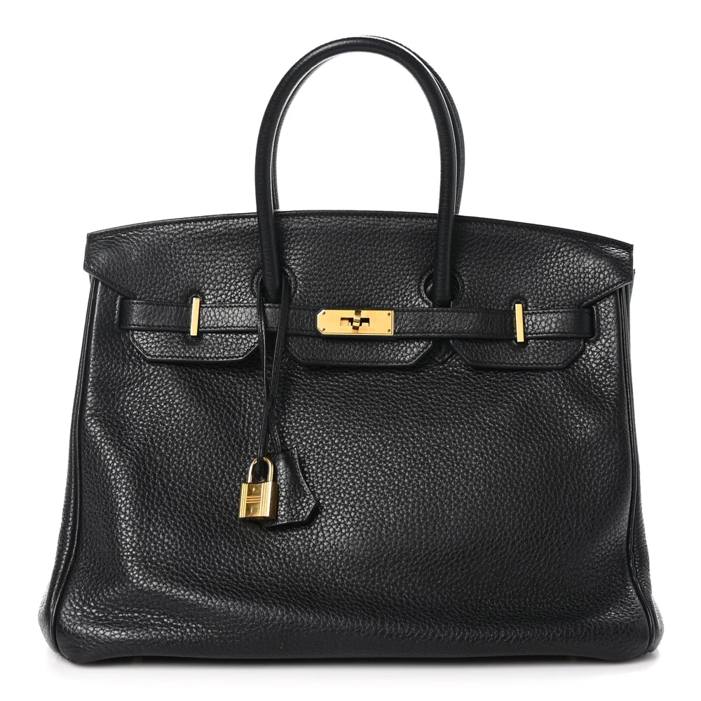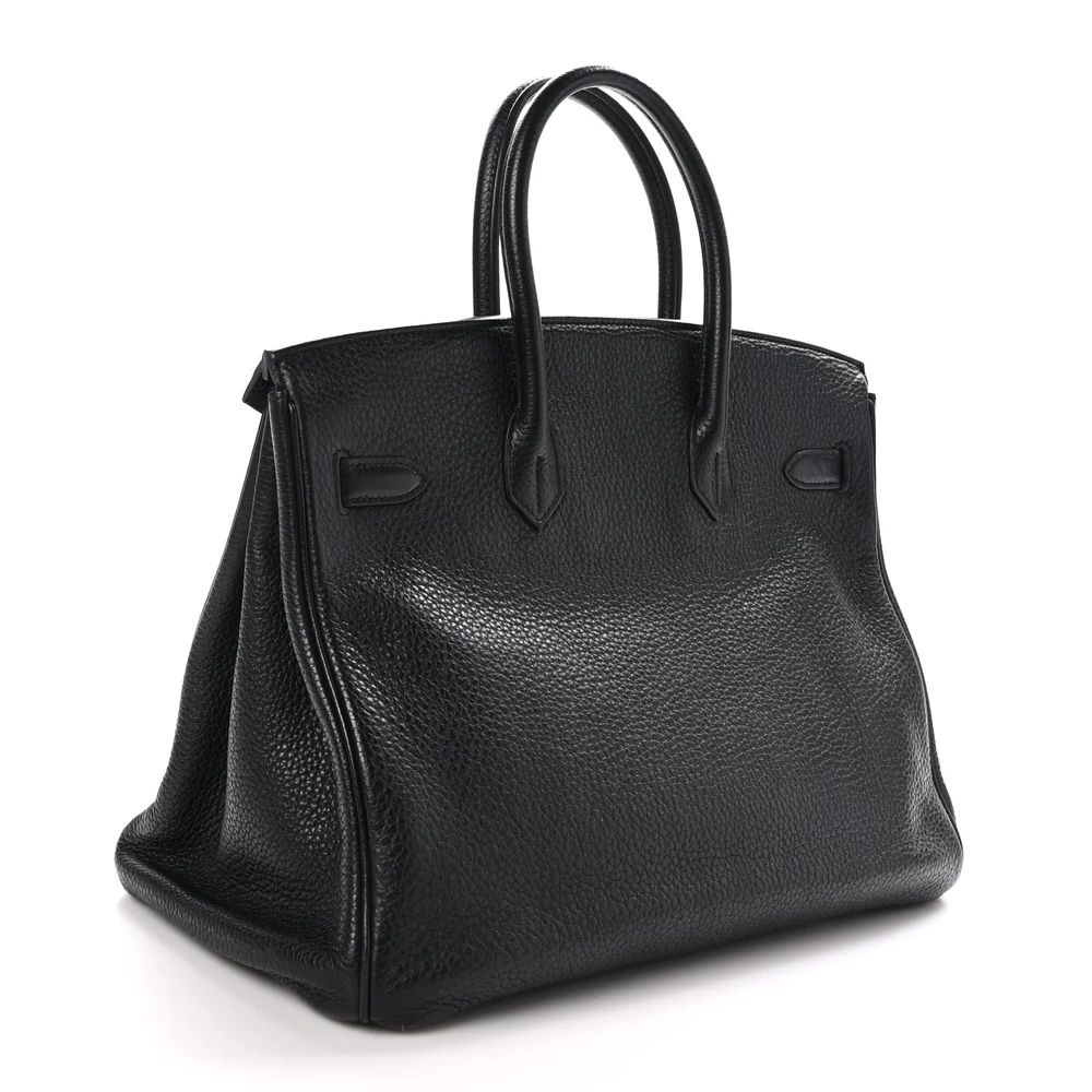 This Hermès Taurillon Clémence Birkin 35 in Black is a classic and sophisticated handbag. The Clémence leather offers a slightly relaxed silhouette while maintaining a luxurious feel. At 35 cm, this bag provides ample space while exuding elegance. Gold hardware adds a rich contrast to the deep black hue. This is a must-have for those who appreciate understated luxury and timeless design.