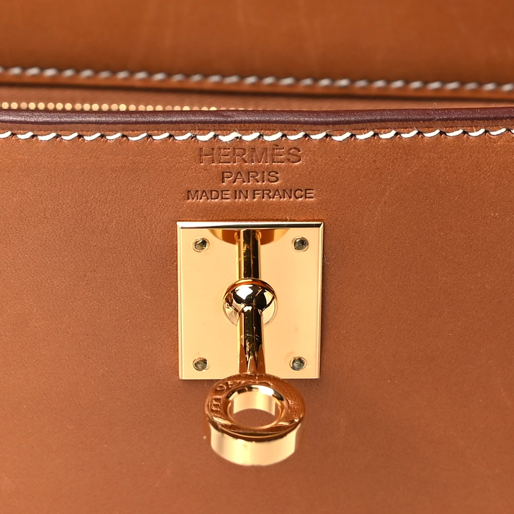 This Hermès Barenia Kelly Sellier 25 Fauve is a rare and exquisite handbag in a rich cognac brown hue. The Barenia leather develops a beautiful patina over time, adding character to its luxurious finish. The Sellier construction enhances its structured and polished aesthetic. Palladium hardware provides a contemporary contrast. This Kelly is a heritage piece with timeless appeal.