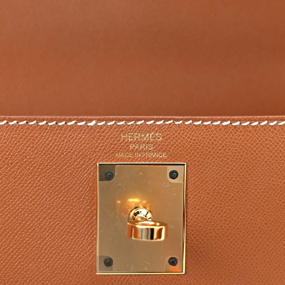 This Hermès Madame Calfskin Kelly Sellier 28 Gold is a refined and luxurious handbag in Hermès’ signature warm caramel shade. The Madame Calfskin leather provides a smooth, structured finish, enhancing its elegant silhouette. The Sellier construction ensures a sharp and polished look. Gold hardware complements the rich tones beautifully. This Kelly is a timeless and investment-worthy addition to any wardrobe.