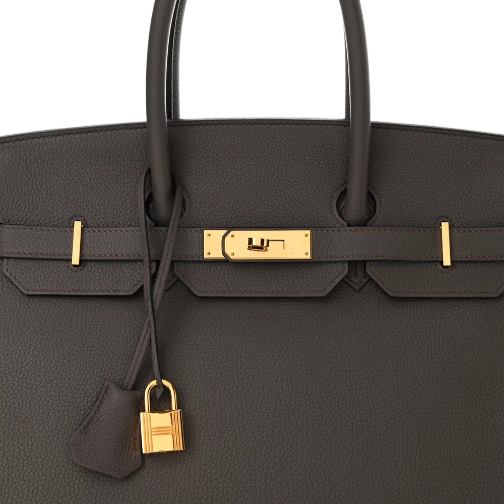 This Hermès Togo Birkin 35 Etain is a sophisticated gray handbag with a modern and versatile aesthetic. The soft yet structured Togo leather makes it a practical choice for daily luxury. The 35 cm size ensures ample space while maintaining a refined silhouette. Palladium hardware perfectly complements the neutral hue, creating a sleek finish. This Birkin is a timeless investment in effortless elegance.
