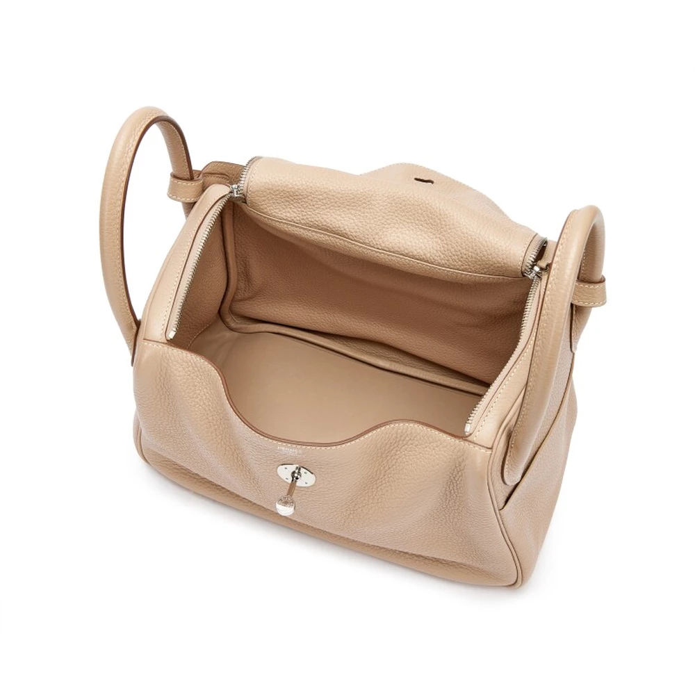 This Hermès Argile Clémence Lindy 30 with Palladium Hardware is a chic and sophisticated handbag in a muted clay-toned shade. The soft Clémence leather offers a relaxed yet polished appearance, while the palladium hardware gives it a sleek and modern contrast. Spacious and stylish, it’s perfect for refined everyday wear.