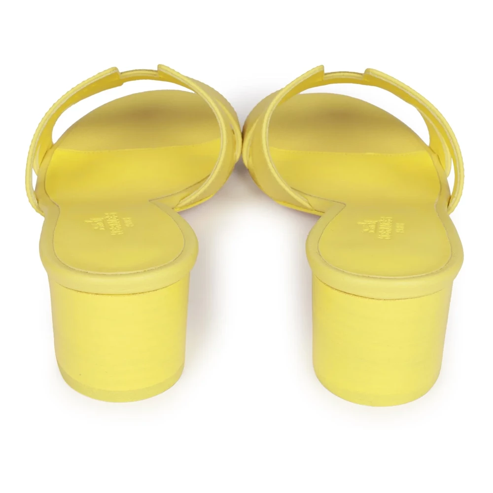 This Hermès Oasis Sandal in lime Epsom leather is a bold and refreshing choice. The vibrant lime shade adds a lively pop of color, making it a standout piece. The slight heel enhances its elegant appeal while maintaining comfort. The structured Epsom leather provides durability and a polished finish. This sandal is an ideal statement piece for those who love colorful and sophisticated footwear.