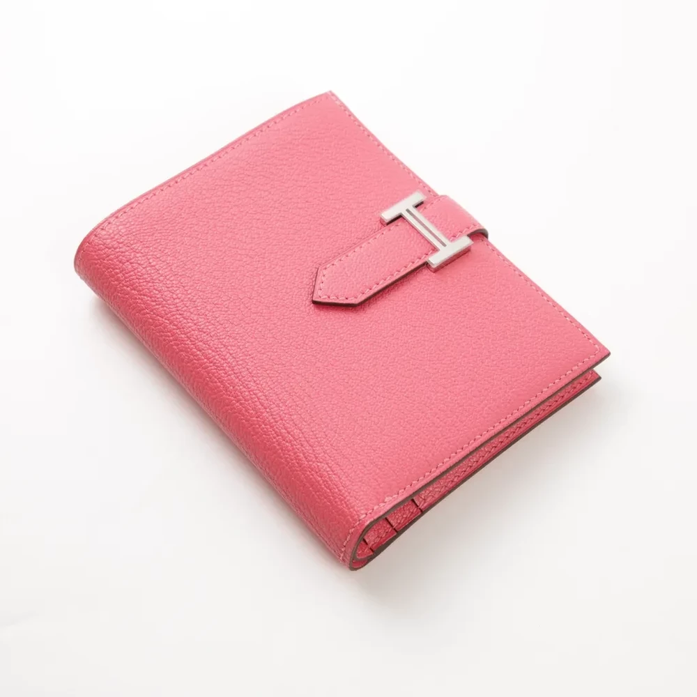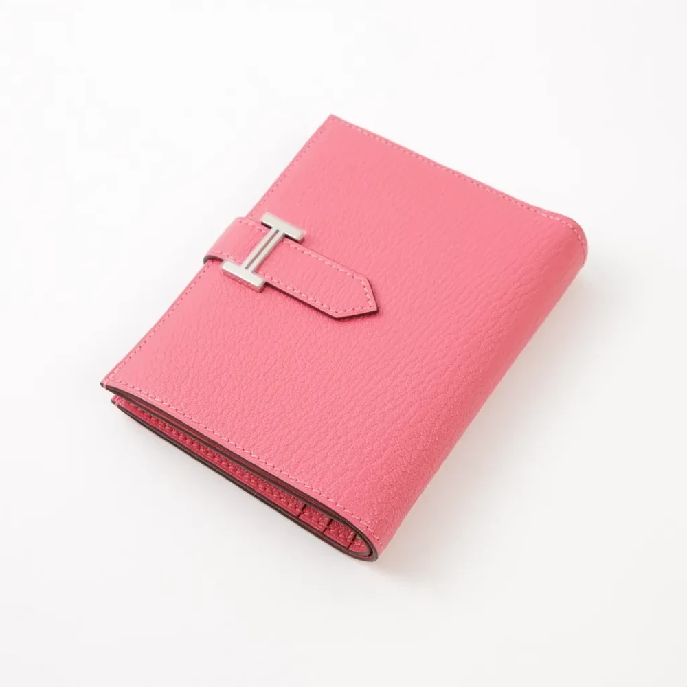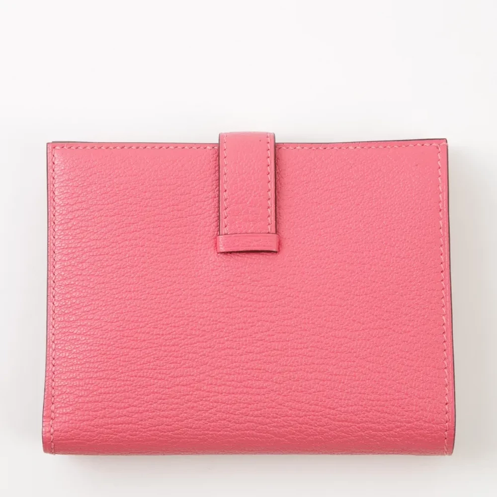 This Hermès Bearn Compact Wallet is a sophisticated accessory crafted from luxurious Chevre leather in the vibrant Rose Lipstick (U5) shade. The sleek design is complemented by Palladium hardware, creating a refined contrast that enhances its timeless appeal. With dimensions of approximately 12cm in width, 9.5cm in height, and 3cm in depth, this compact wallet offers both style and functionality. It comes with essential accessories, including a box, receipt, and felt, ensuring authenticity and protection. Available in Japan, this elegant piece embodies Hermès’ signature craftsmanship and enduring luxury.