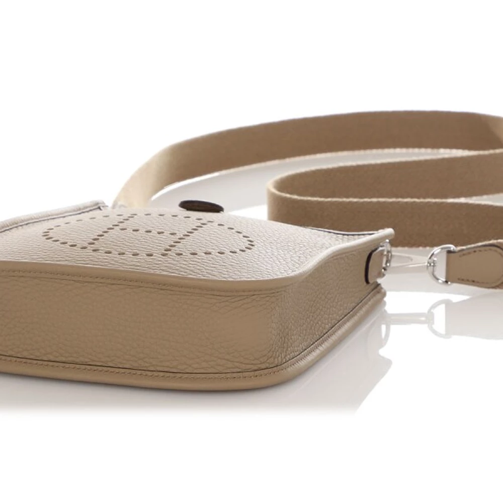 This Hermès Beige Marfa Clémence Evelyne TPM 16 with Palladium Hardware is a refined and neutral crossbody bag in a warm beige tone. The soft Clémence leather provides a relaxed yet structured silhouette, while the palladium hardware enhances its modern appeal. The compact size and perforated “H” logo make it a versatile and stylish choice.