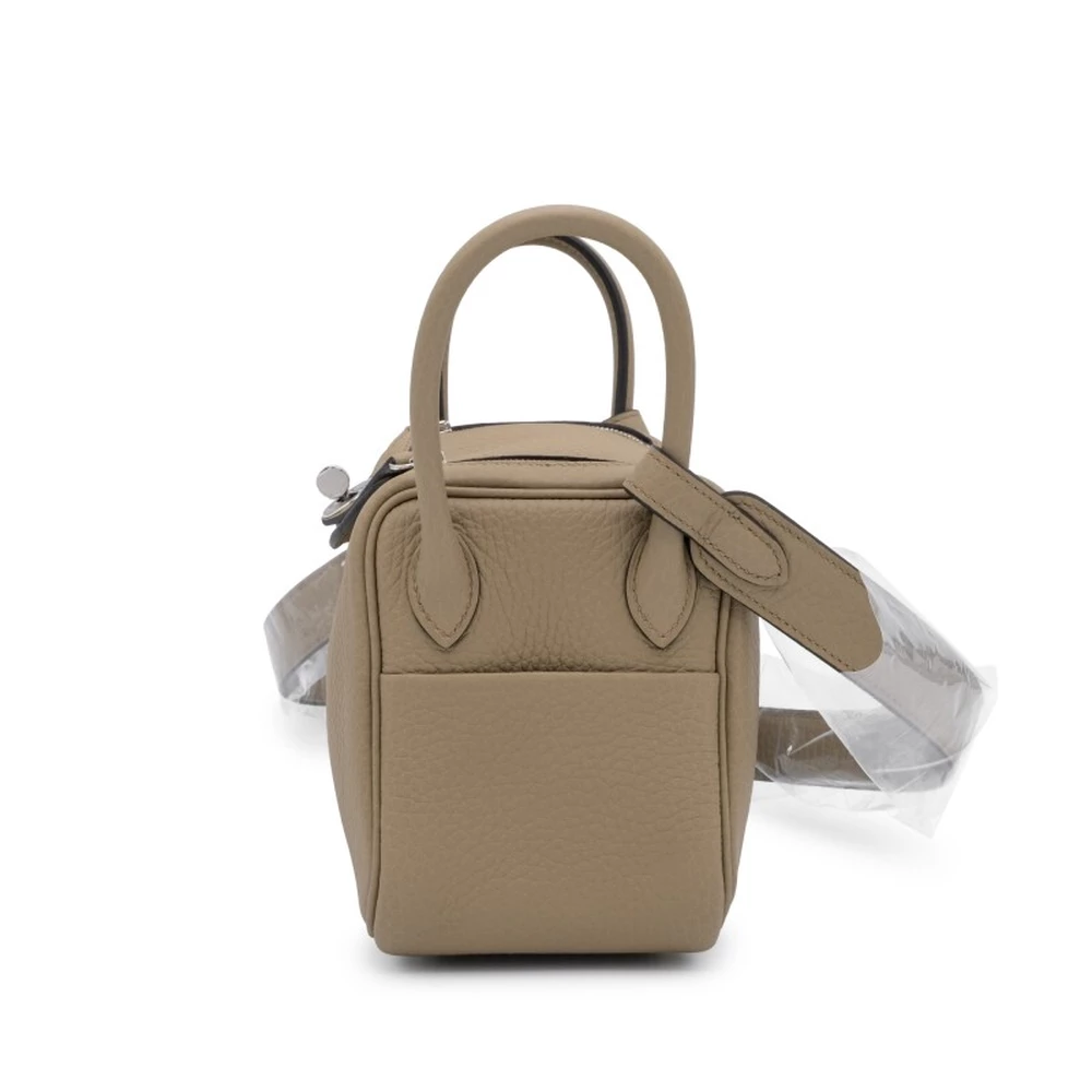 This Hermès Beige Marfa Clémence Mini Lindy II with Palladium Hardware is a refined and neutral-toned handbag in a soft beige shade. The grained Clémence leather ensures durability, while the palladium hardware adds a modern touch. Its compact size and understated elegance make it a wardrobe essential.