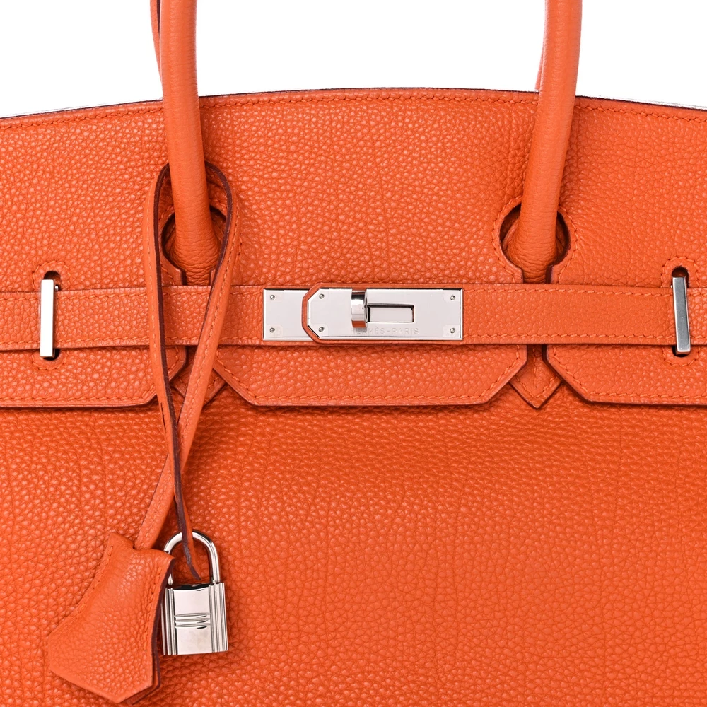This Hermès Togo Birkin 35 Orange is an iconic and energetic handbag that embodies the spirit of Hermès. Crafted from Togo leather, it offers both durability and a luxurious soft texture. The 35 cm size makes it a perfect companion for everyday sophistication. Gold hardware adds a radiant contrast, elevating the bag’s vibrant color. This Birkin is a must-have for collectors who love bold, classic hues.