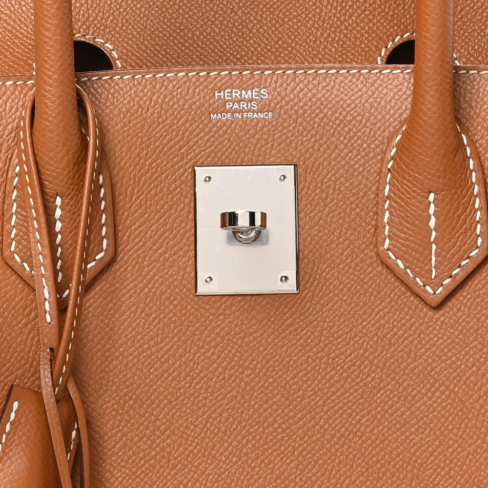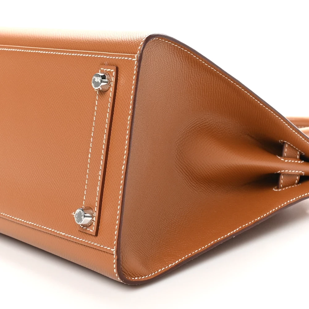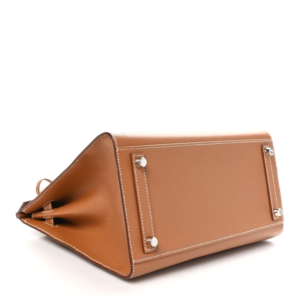 This Hermès Epsom Birkin Sellier 30 in Gold is a refined handbag crafted from Epsom leather, known for its embossed texture and structured form. The ‘Sellier’ style features sharp, clean lines and visible stitching, giving it a more rigid and formal appearance compared to the traditional Birkin. The ‘Gold’ color is a classic tan hue, versatile and timeless, suitable for various outfits and occasions. Measuring 30 cm, it offers a balanced size that is both practical and elegant. The palladium hardware complements the warm tone, adding a touch of modernity to the classic silhouette.