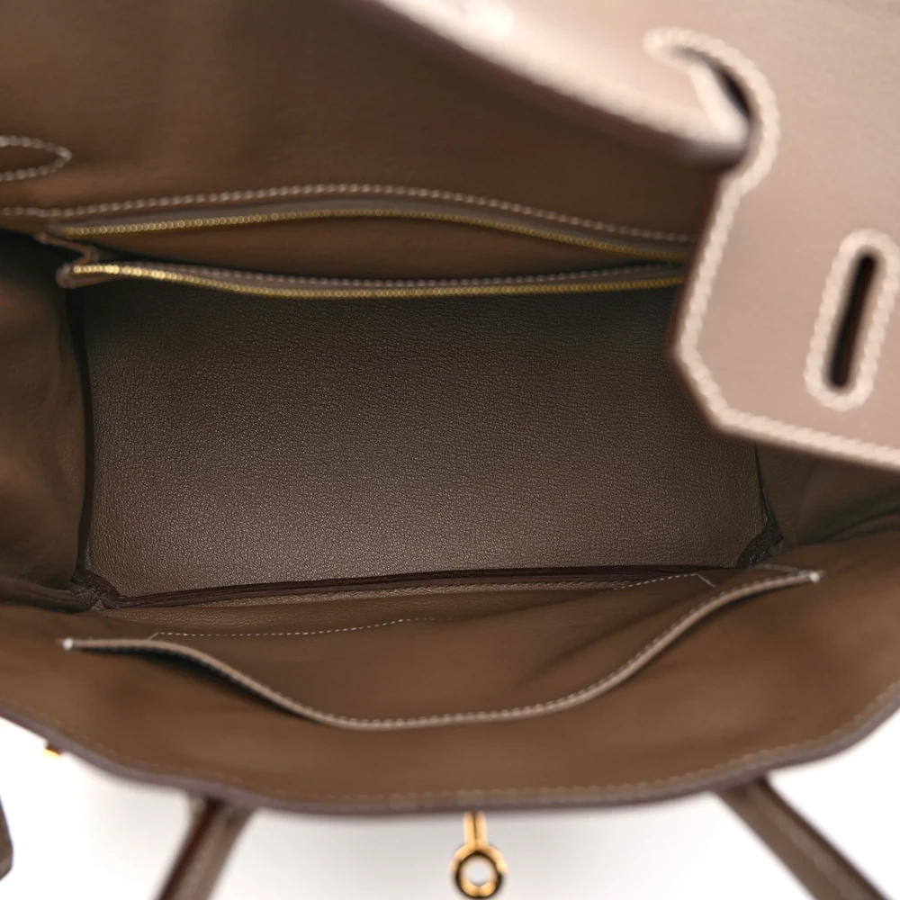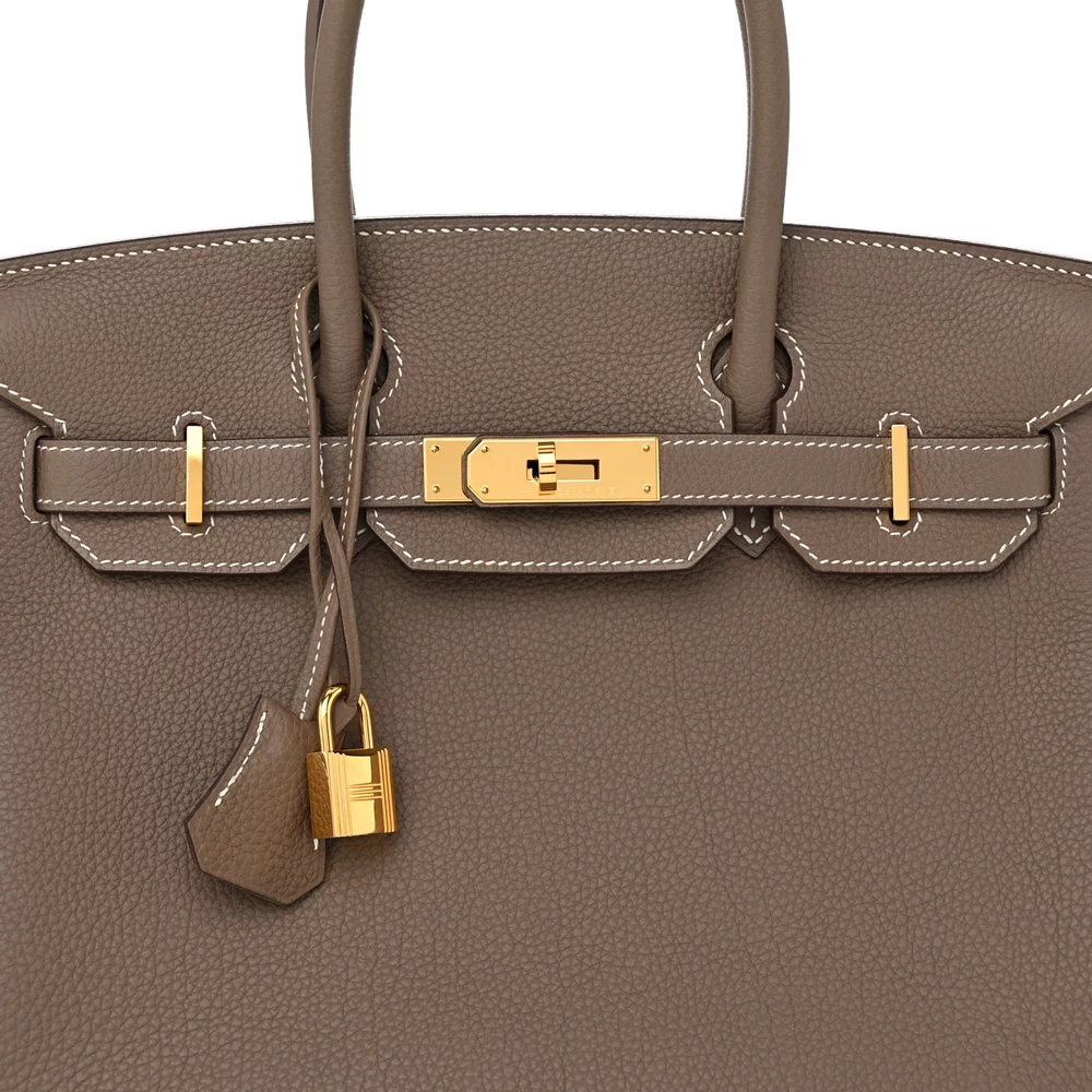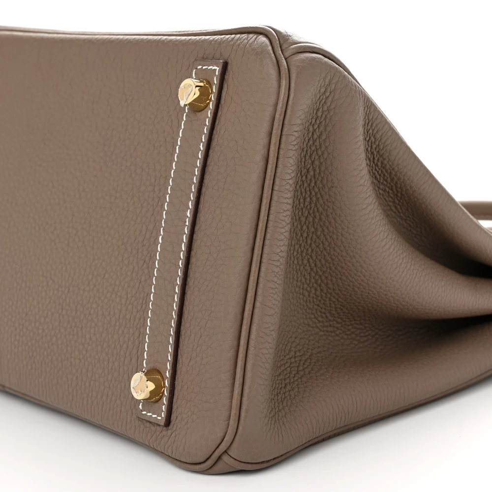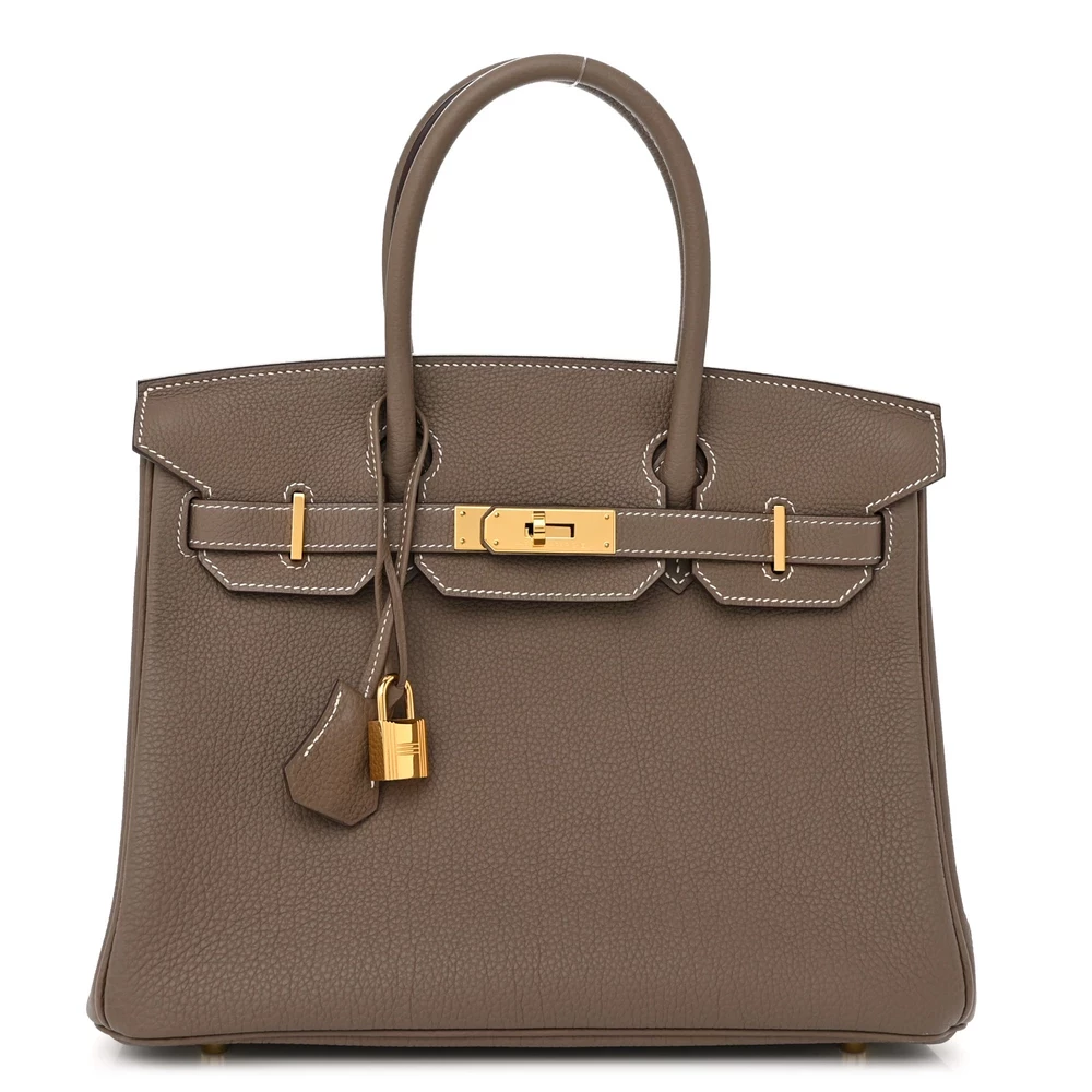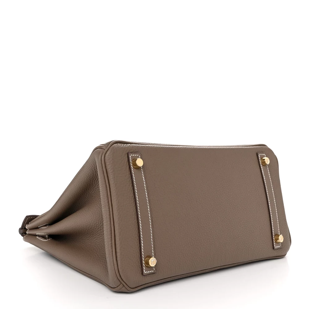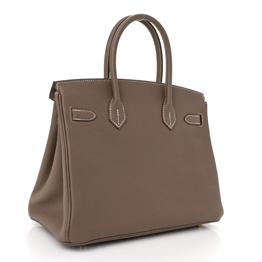 This Hermès Togo Birkin 30 in Etoupe is a versatile and elegant handbag crafted from Togo leather. The neutral Etoupe color ensures it complements a wide range of outfits. At 30 cm, it balances practicality with sophistication. The palladium hardware adds a sleek touch, making this Birkin a timeless addition to any collection.