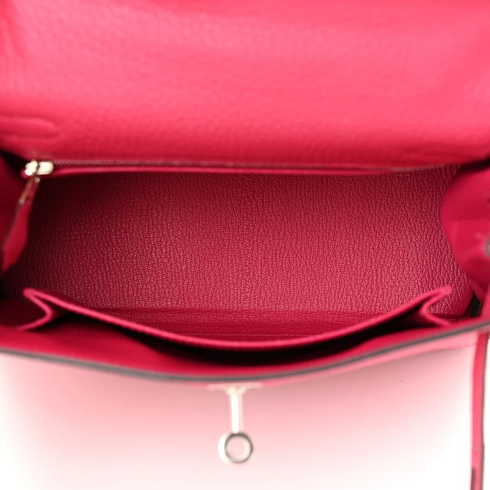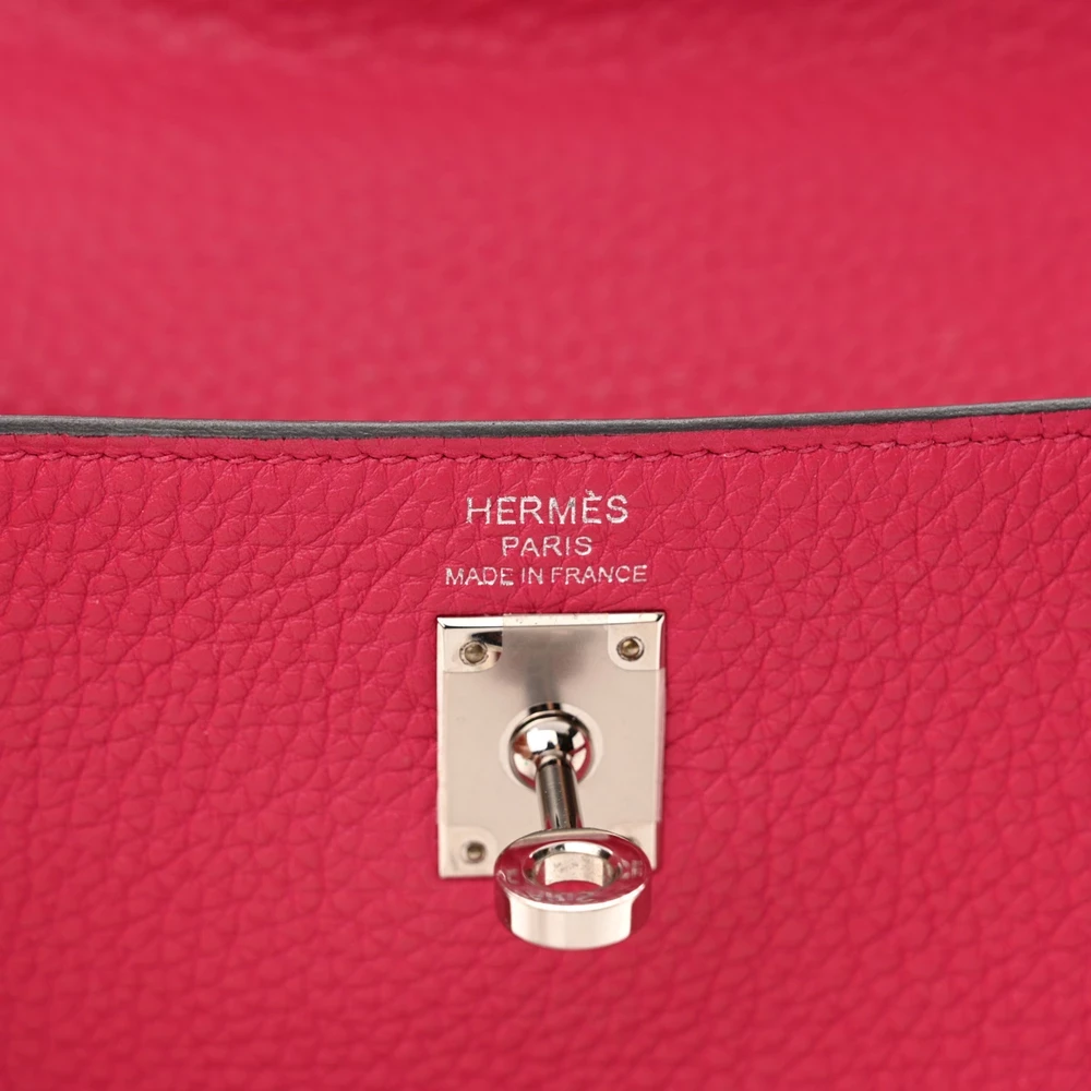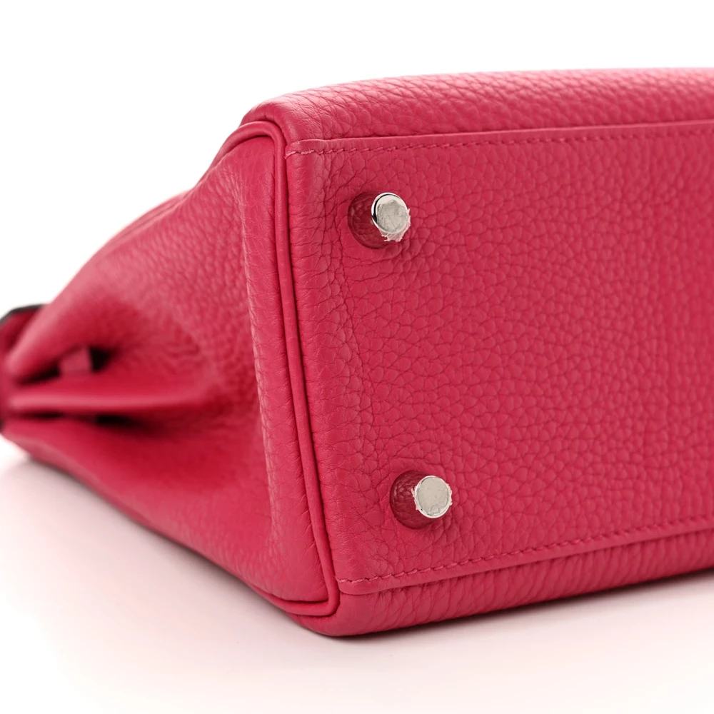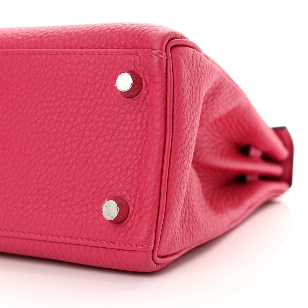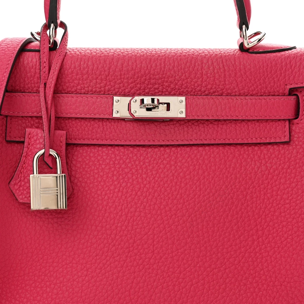 This Hermès Togo Kelly Retourne 25 Rose Mexico is a playful and feminine handbag in a rich pink shade. The Togo leather offers a soft, grained texture, ensuring durability while maintaining a relaxed silhouette. The Retourne construction adds to its effortless elegance. Palladium hardware provides a sleek, modern contrast. This Kelly is a standout piece for those who appreciate bold colors and refined design.