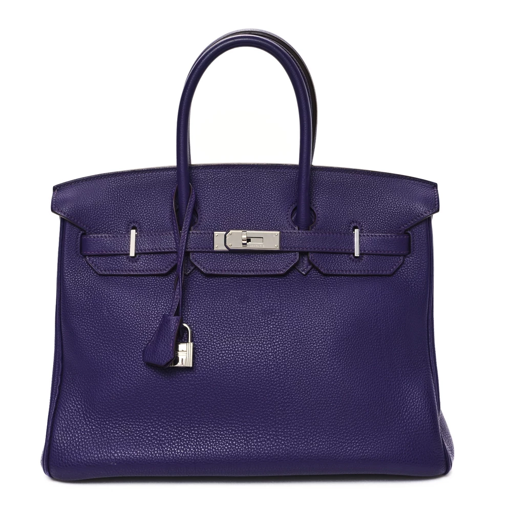 This Hermès Togo Birkin 35 in Iris is a captivating handbag in a rich and regal purple shade. Made from Togo leather, it balances structure with a supple touch, ensuring long-lasting appeal. The 35 cm size offers generous space, making it perfect for those who need practicality without compromising on luxury. Palladium hardware complements the deep violet hue with a contemporary contrast. This Birkin is an exquisite choice for those who love bold yet elegant colors.
