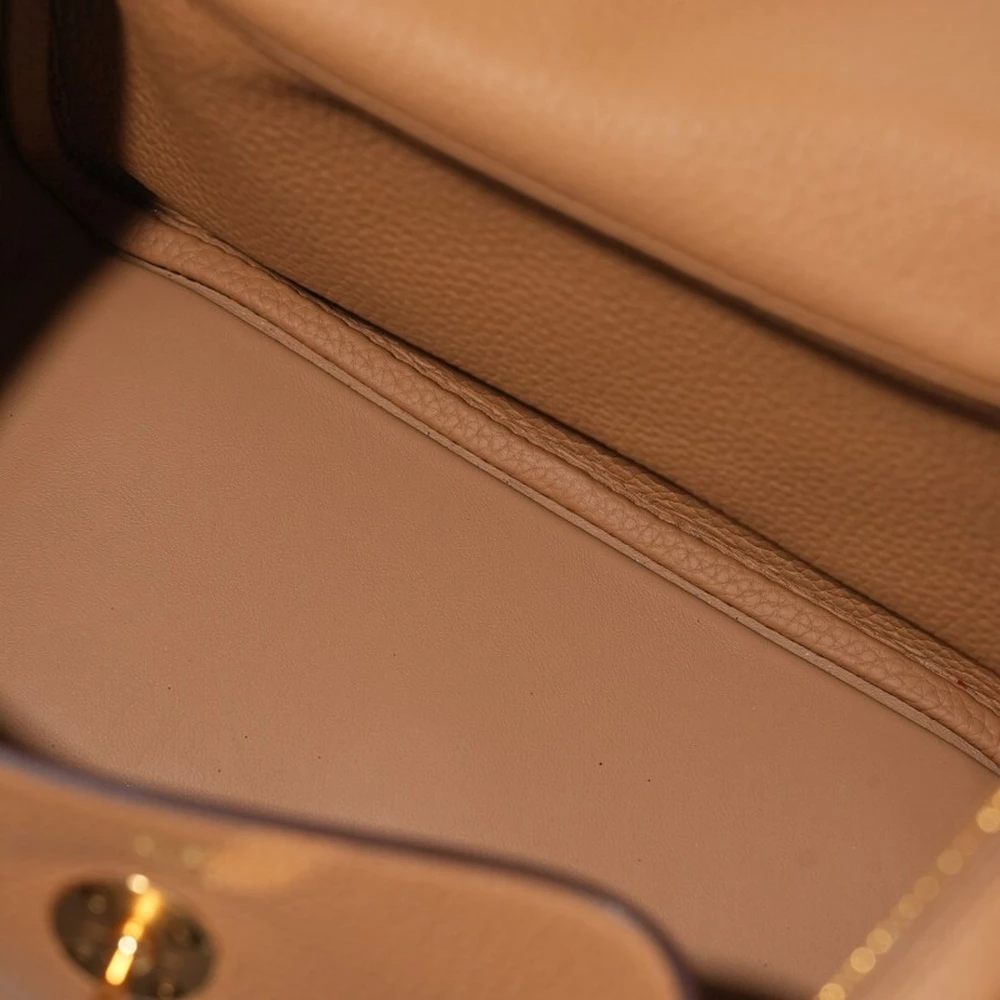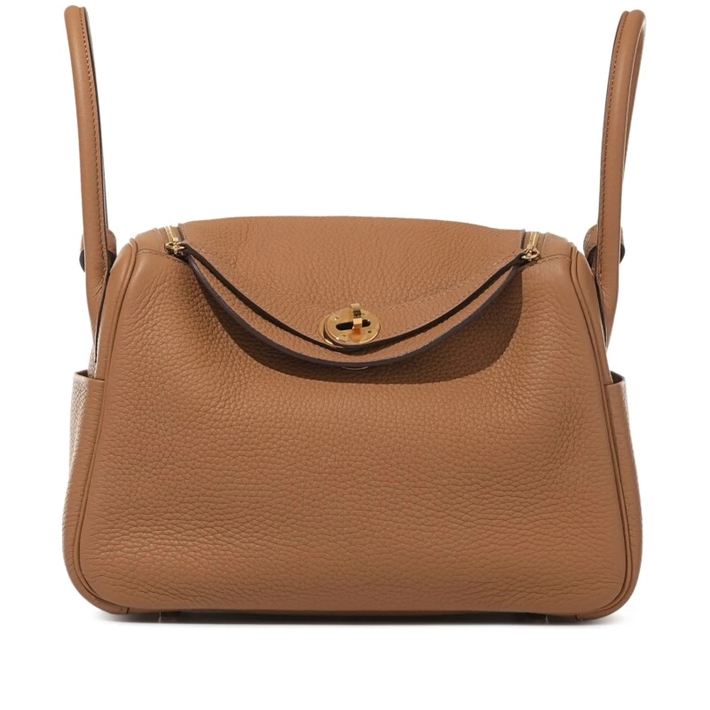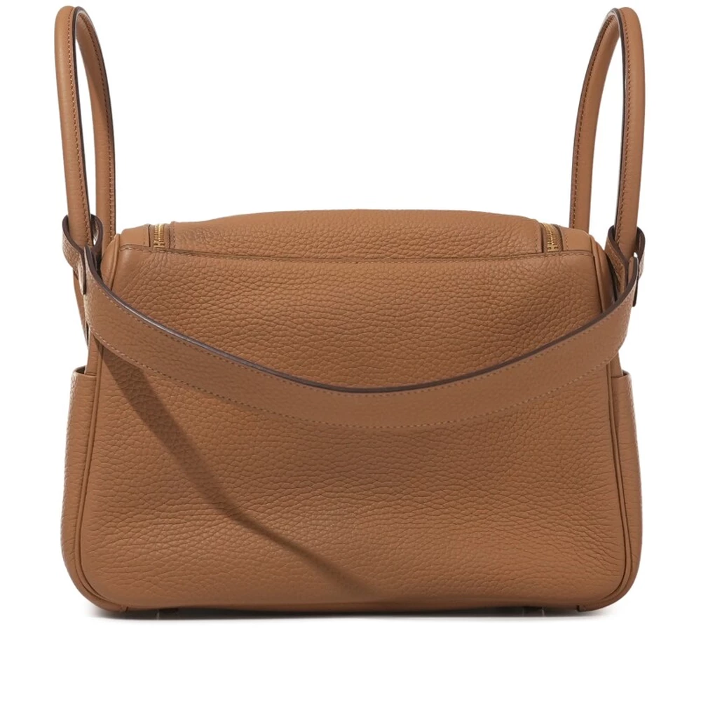 This Hermès Biscuit Clémence Lindy 26 with Gold Hardware is a refined handbag in a warm beige-brown hue. The supple Clémence leather enhances its relaxed structure, while the gold hardware adds a luxurious contrast. With its spacious interior, it’s an elegant everyday choice.