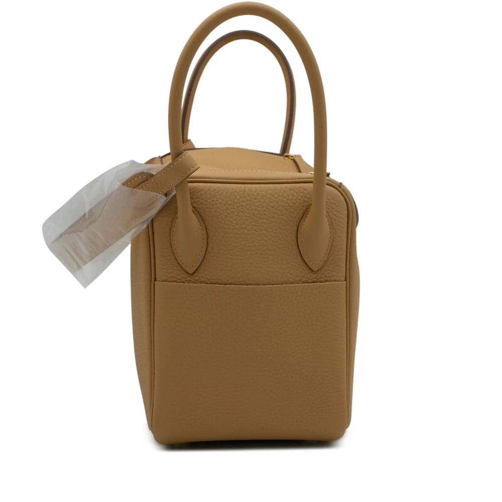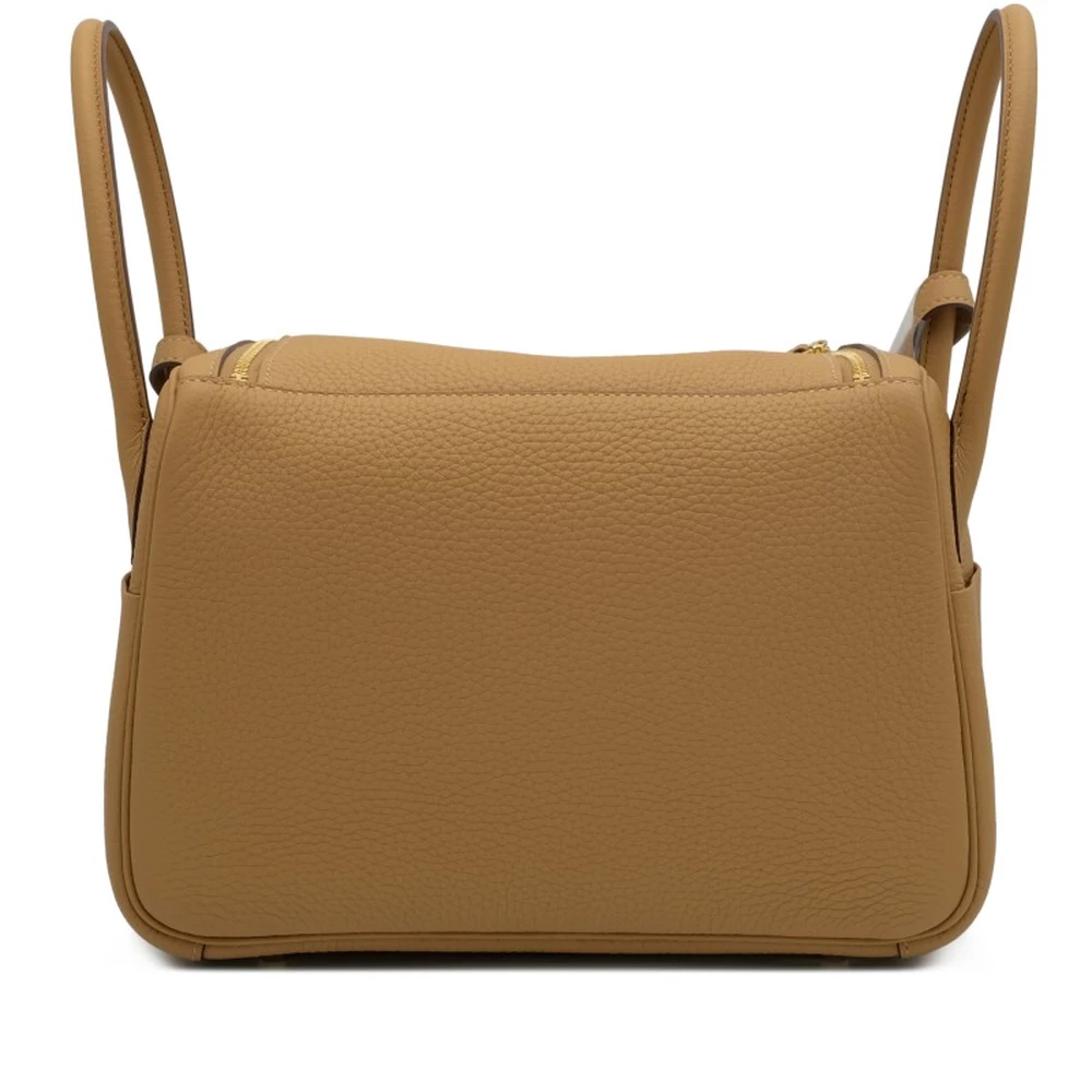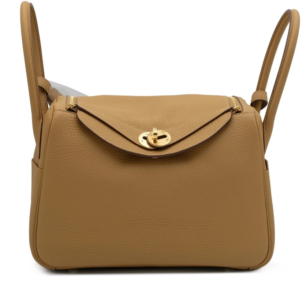 This Hermès Biscuit Clémence Lindy 26 with Gold Hardware is a warm and sophisticated handbag in a soft beige tone. The grained Clémence leather enhances its casual elegance, while the gold hardware adds a classic touch. Spacious yet structured, it’s a refined option for everyday luxury.