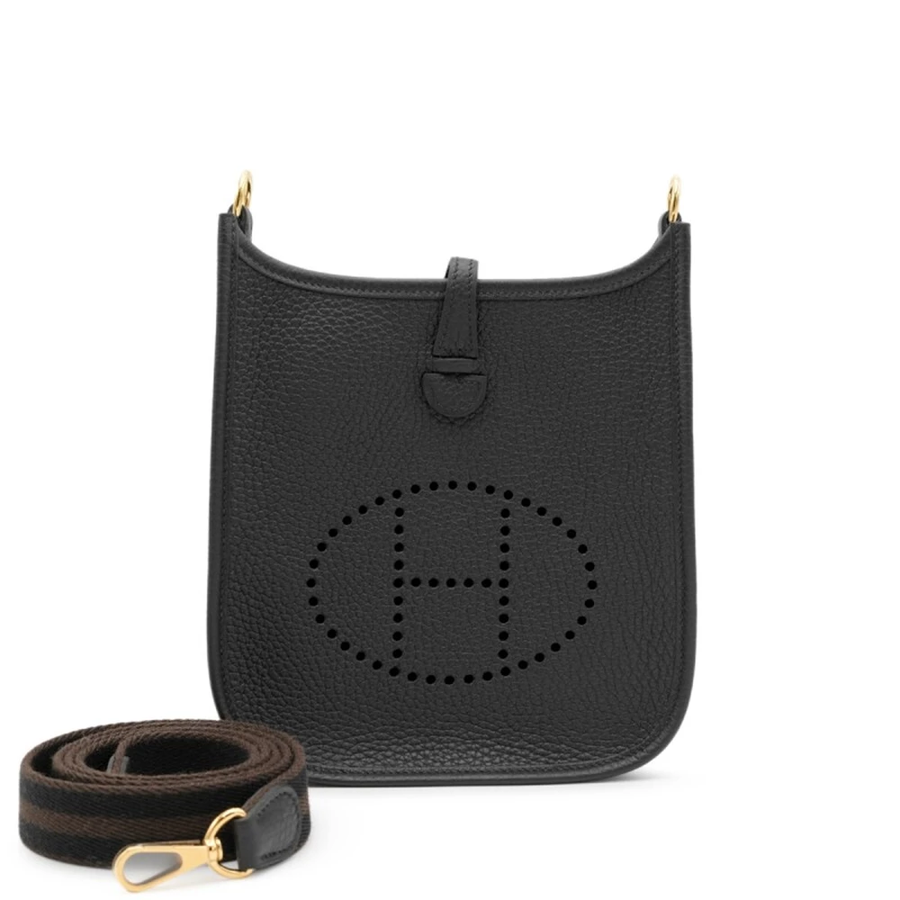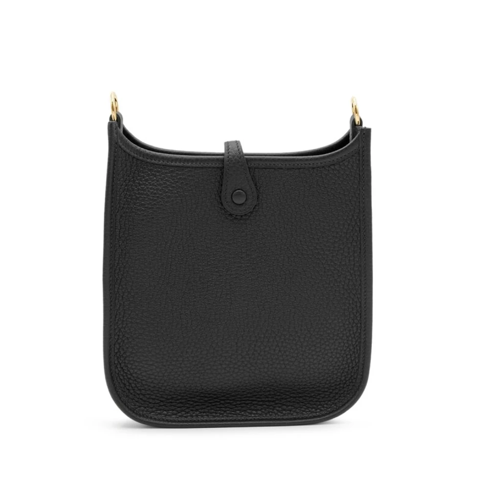 This Hermès Black Clémence Mini Evelyne II TPM 16 with Gold Hardware is a refined and versatile handbag in deep black. The supple Clémence leather pairs elegantly with the warm gold hardware, creating a timeless design. The perforated “H” logo and crossbody style make it a luxurious yet practical choice.