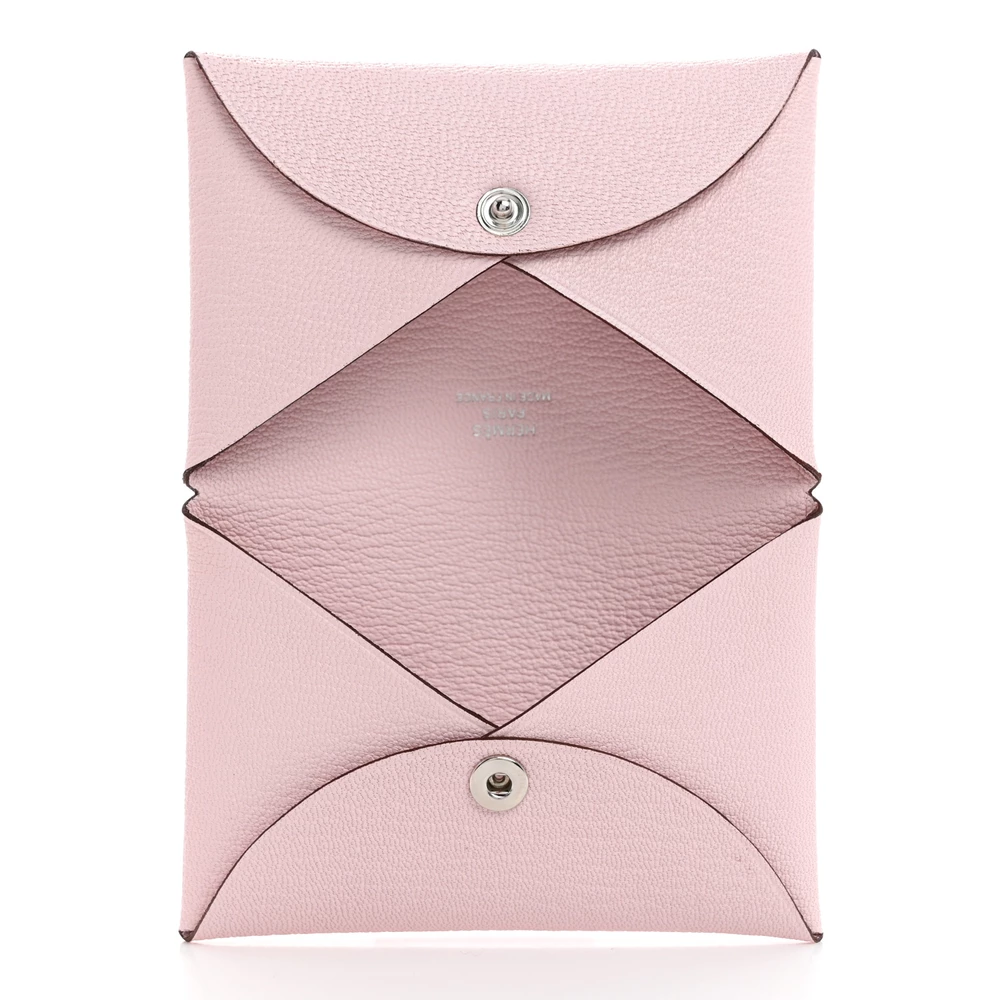 This Hermès Chèvre Mysore Calvi Card Case in Rose Darling is a delicate and feminine piece for organizing essentials. The soft Rose Darling shade adds a subtle elegance to the fine-grain Chèvre Mysore leather. Featuring a simple fold-over closure, it offers a sleek and practical design. Compact and lightweight, it is perfect for daily use. A chic addition to any Hermès collection.