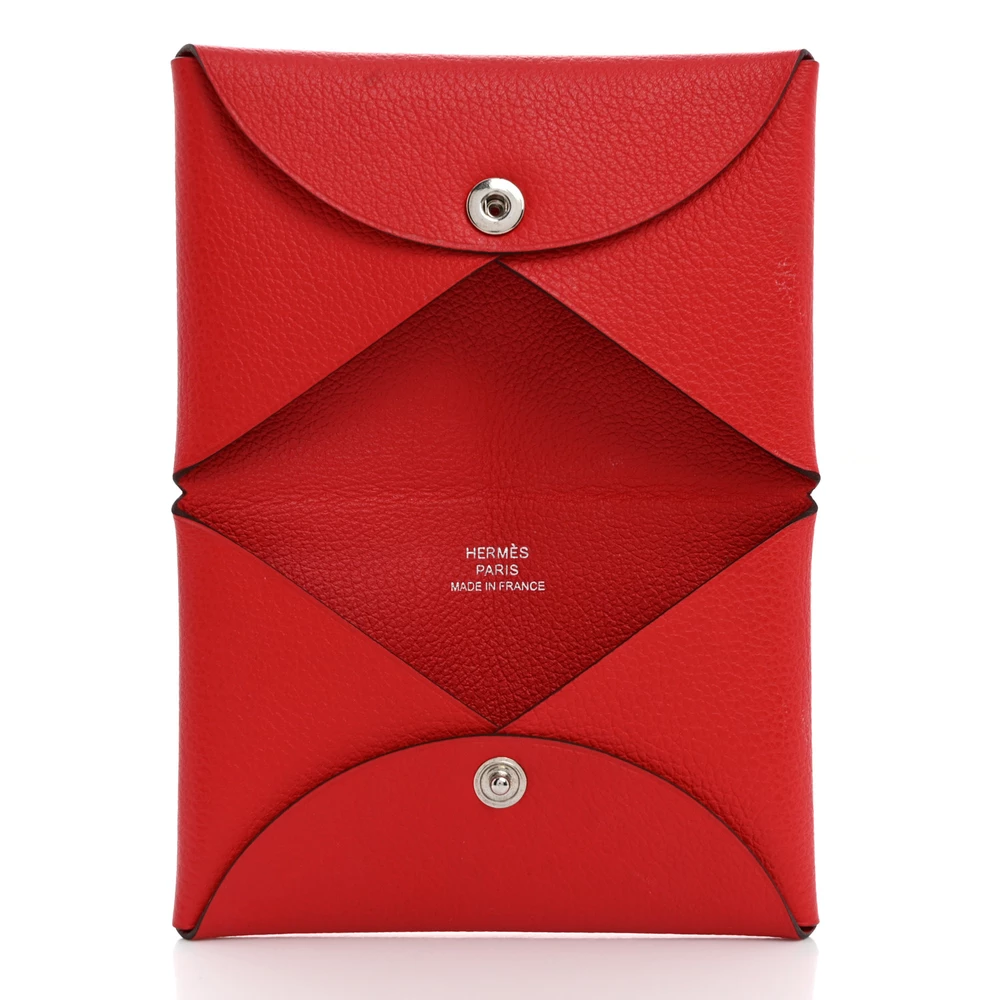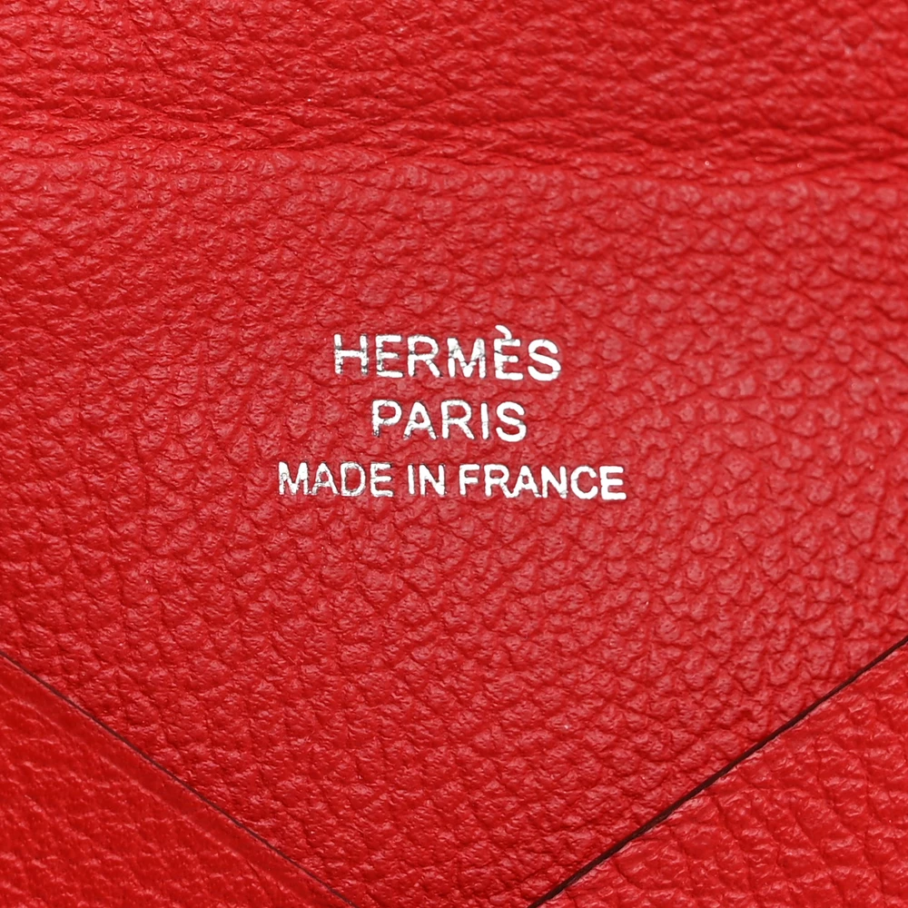 This Hermès Evercolor Calvi Card Case in Rouge De Coeur is a vibrant and stylish piece for organizing cards. The rich red hue makes a bold statement, perfectly complementing the soft Evercolor leather. Featuring a sleek, fold-over design, it is both functional and elegant. Compact and easy to carry, it fits seamlessly into small bags or pockets. A refined touch to any collection.