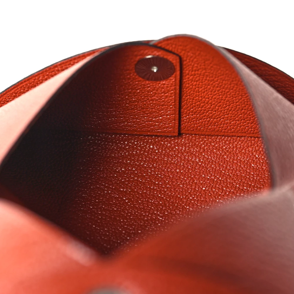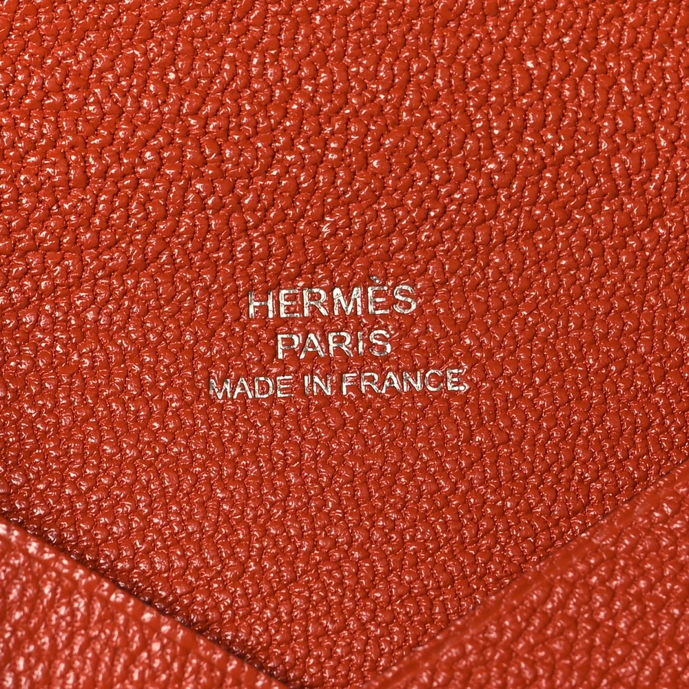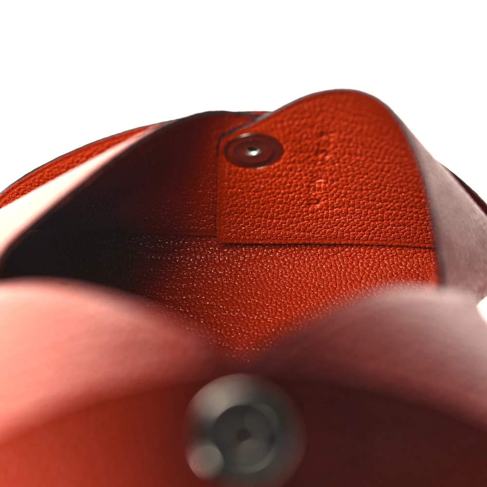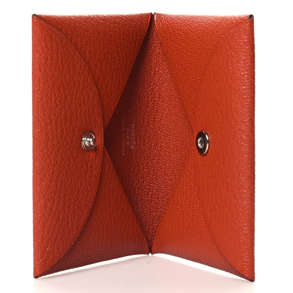 This Hermès Calvi Card Case in Cuivre is a refined and functional accessory designed for effortless organization. Crafted from Chèvre Mysore leather, its fine grain and lightweight durability make it a perfect companion for everyday luxury. The simple yet ingenious design secures cards with a snap closure, embodying Hermès’ signature craftsmanship in a compact form.