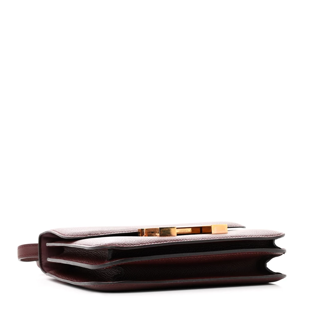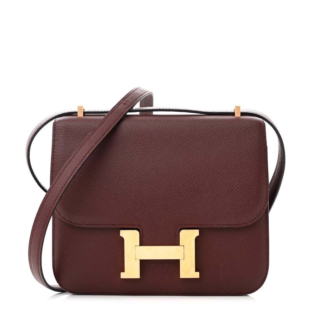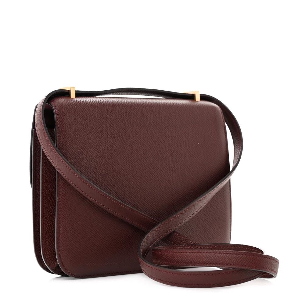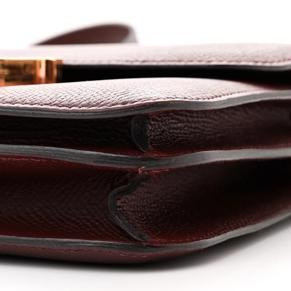 This Hermès Epsom Constance 18 Rouge Grenat is a structured and elegant handbag in a deep red shade. The Epsom leather ensures a polished and scratch-resistant finish, maintaining its crisp silhouette. The compact 18cm size makes it a versatile and sophisticated accessory. Gold hardware adds a luxurious and timeless touch. This Constance is a chic and refined luxury piece.