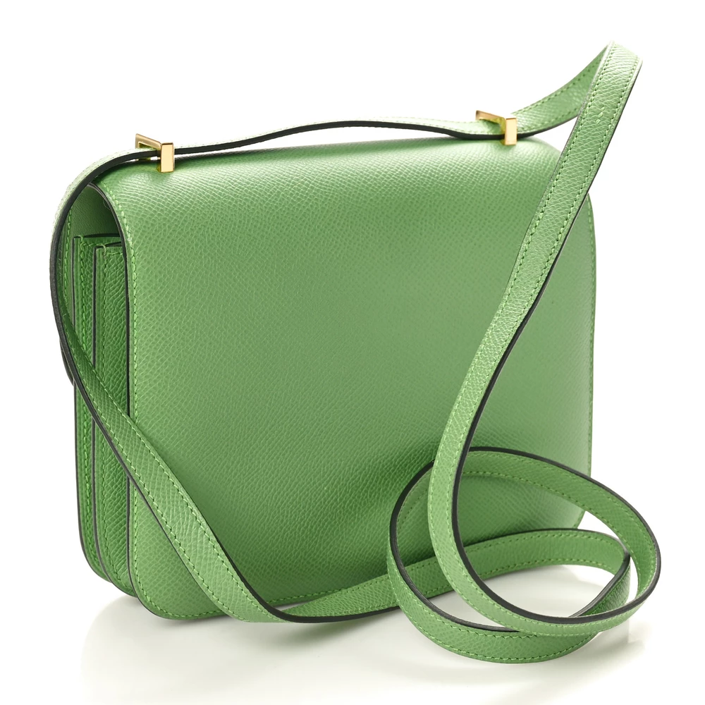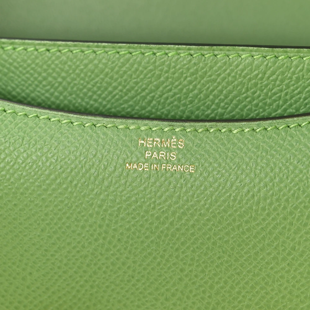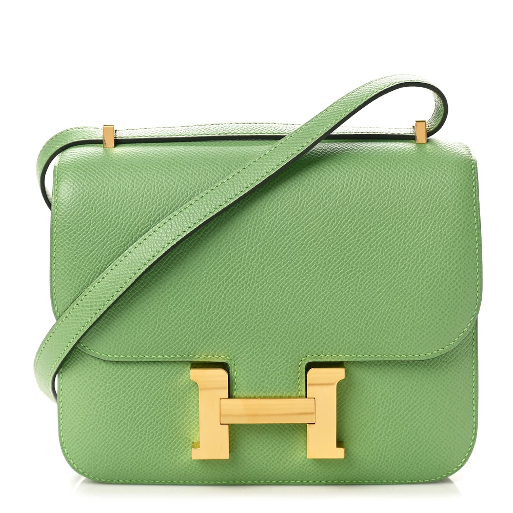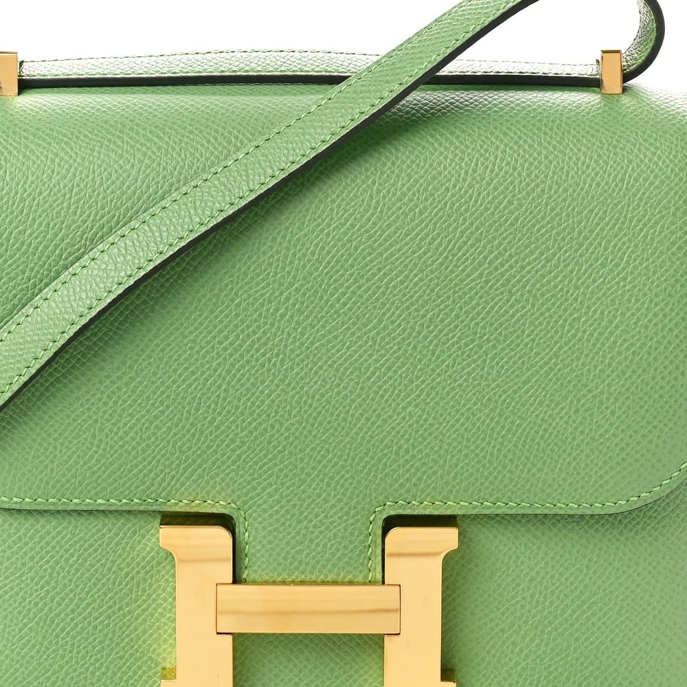 This Hermès Epsom Constance 18 Vert Criquet is a fresh and vibrant handbag in a striking green shade. The Epsom leather ensures a structured, scratch-resistant finish, maintaining its crisp silhouette. The compact 18cm size makes it a perfect statement accessory. Palladium hardware enhances its modern and refined look. This Constance is a bold and elegant luxury piece.