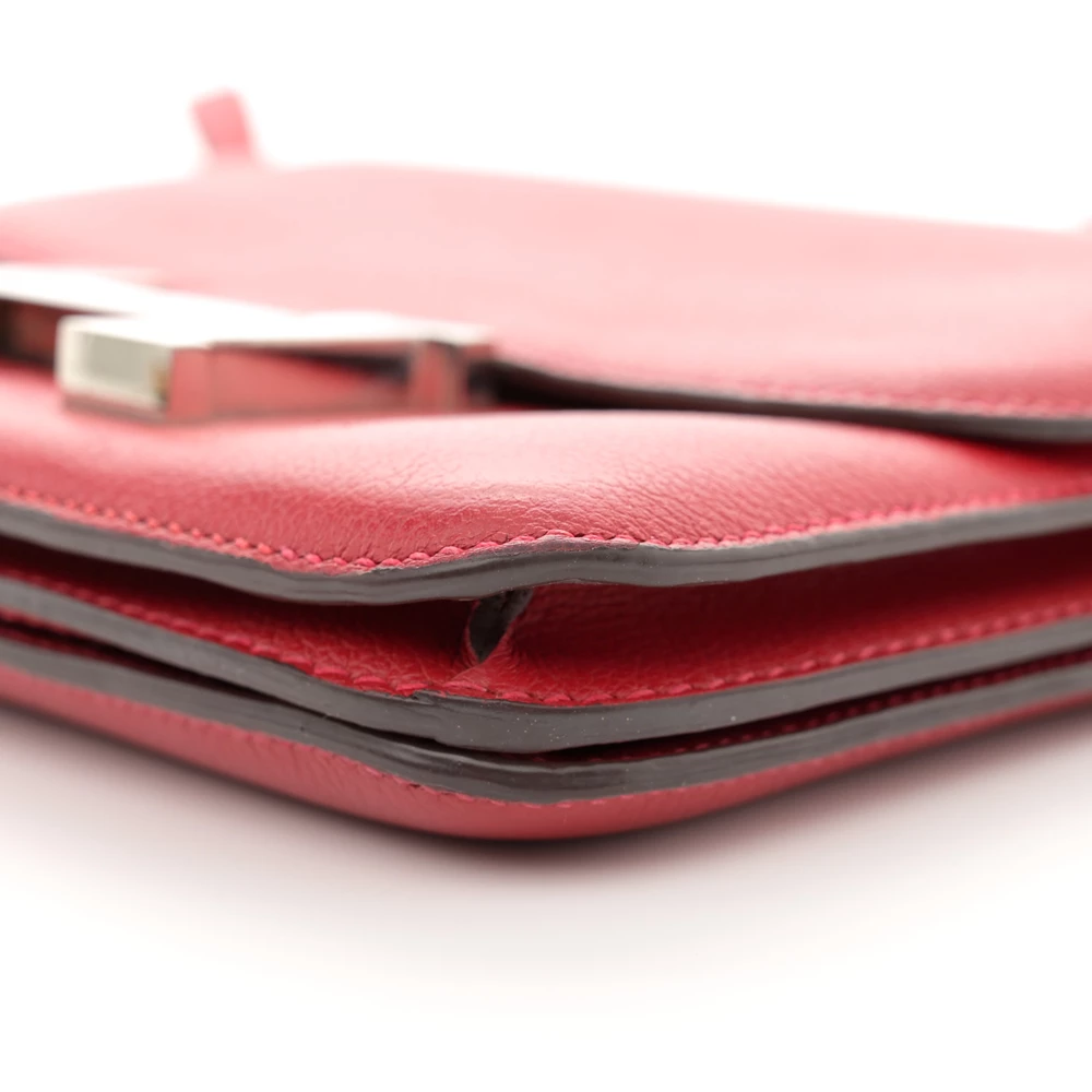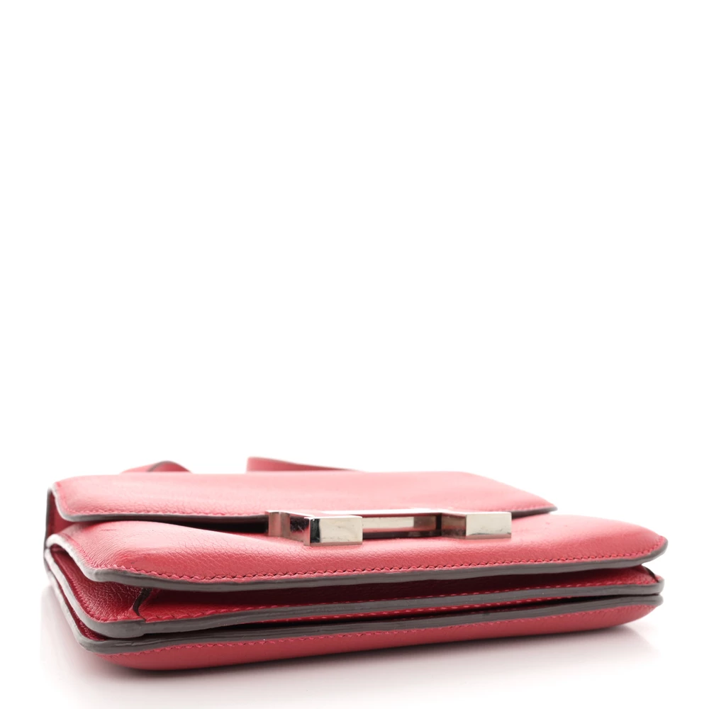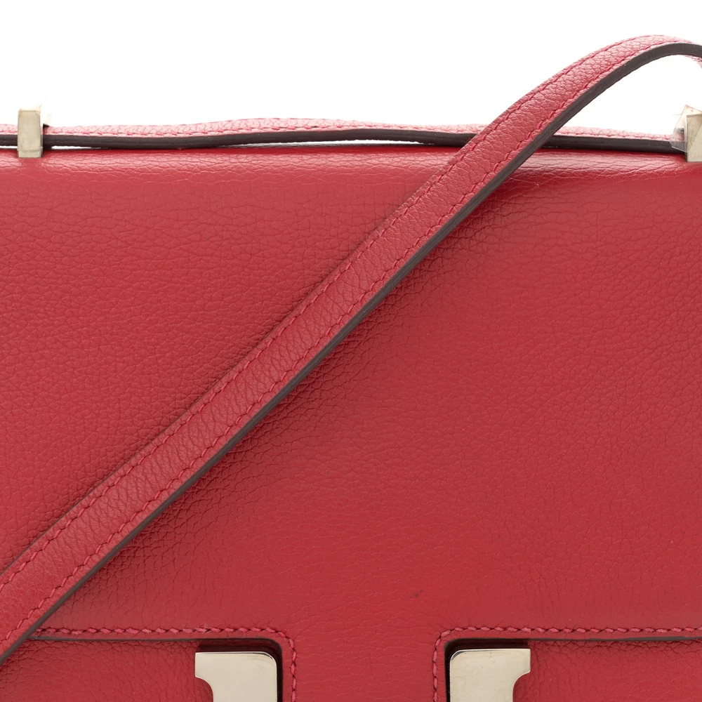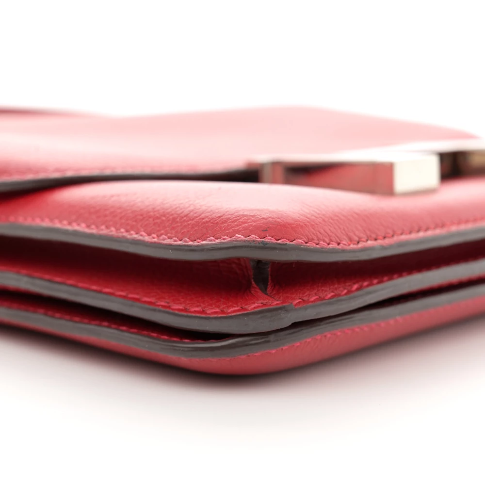 This Hermès Evercolor Constance 18 Rouge Piment is a vibrant and structured handbag in a striking red shade. The Evercolor leather provides a smooth, soft texture with a subtle grain, ensuring a refined aesthetic. The 18cm size offers a chic and practical option. Palladium hardware enhances its sophisticated and bold appeal. This Constance is a perfect blend of elegance and modernity.