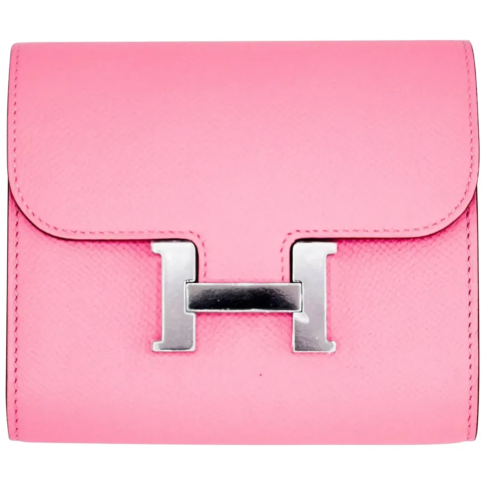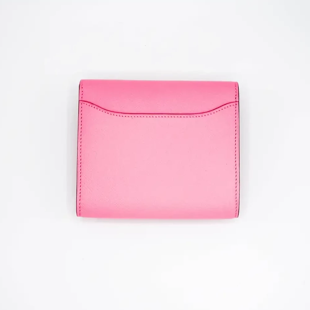 This Hermès Constance Compact Wallet in Rose Confetti Epsom with Palladium Hardware is a vibrant and elegant statement piece. The lively Rose Confetti shade in structured Epsom leather ensures durability, while the palladium H clasp provides a striking contrast. Designed for those who appreciate playful yet sophisticated accessories, this wallet is a chic and practical addition to any wardrobe.