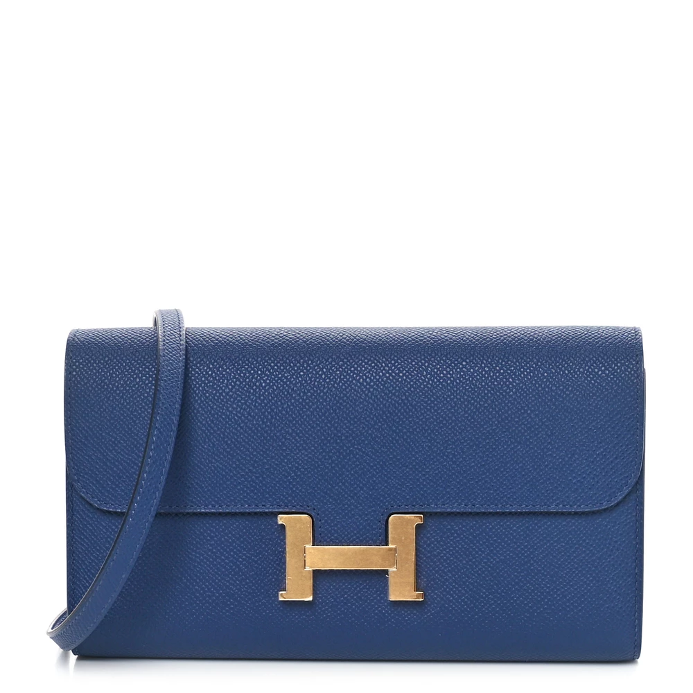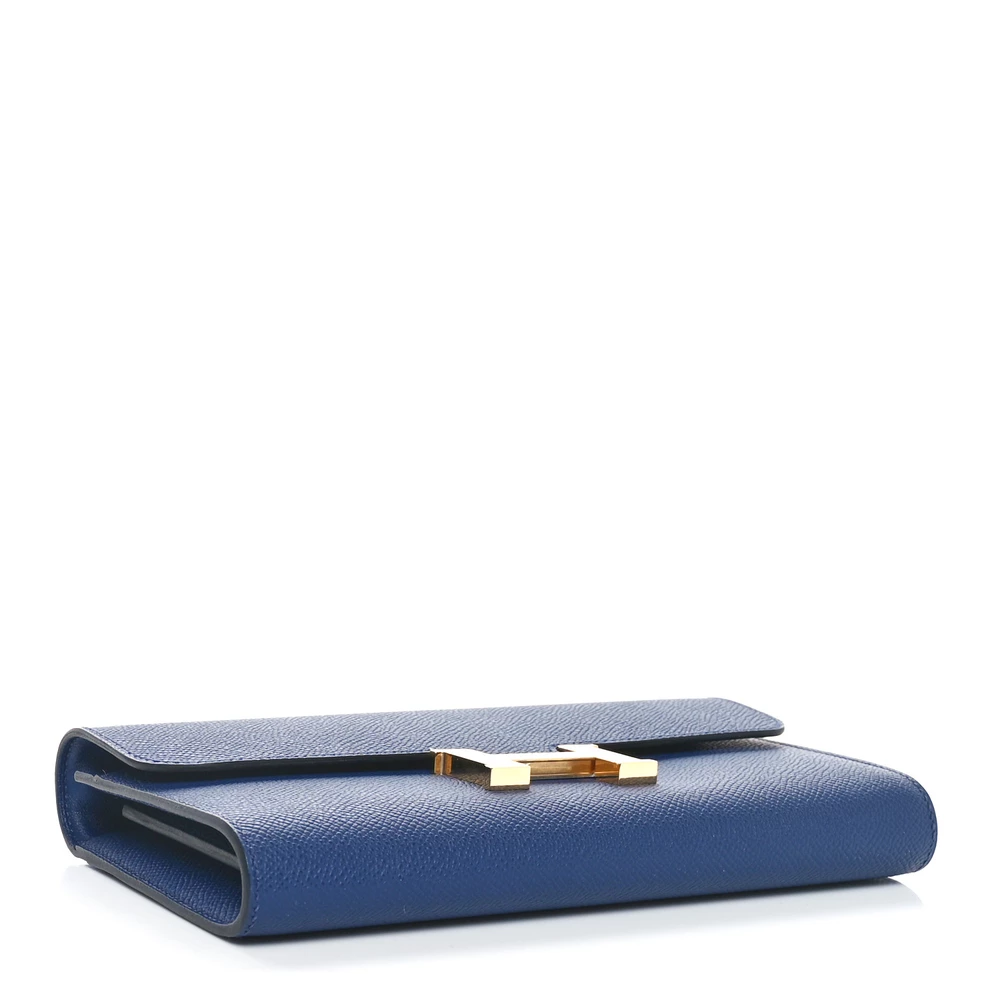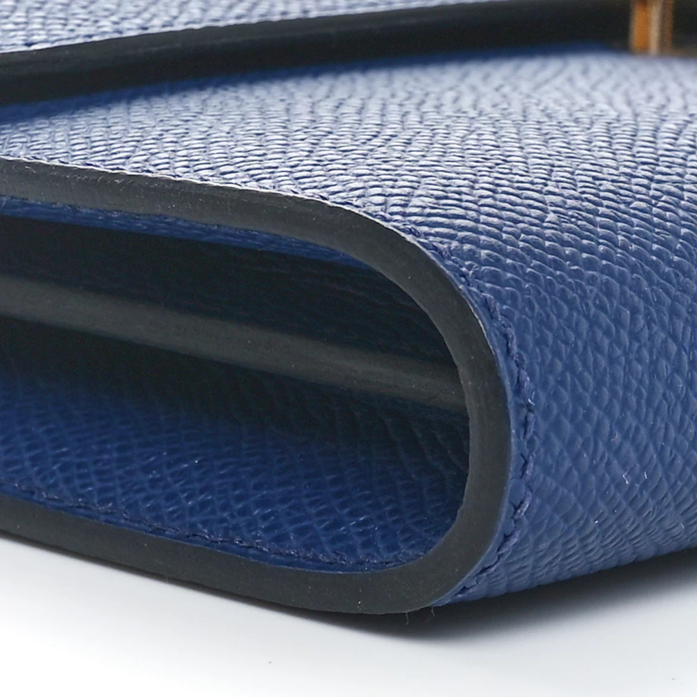 This Hermès Epsom Constance Long To Go Wallet Bleu Saphir is a sleek and versatile accessory in a deep sapphire blue shade. The Epsom leather offers a structured, scratch-resistant finish, maintaining a refined look. The wallet design features a removable strap for multiple styling options. Palladium hardware enhances its sophisticated appeal. This Constance Wallet To Go is a stylish and functional luxury piece.