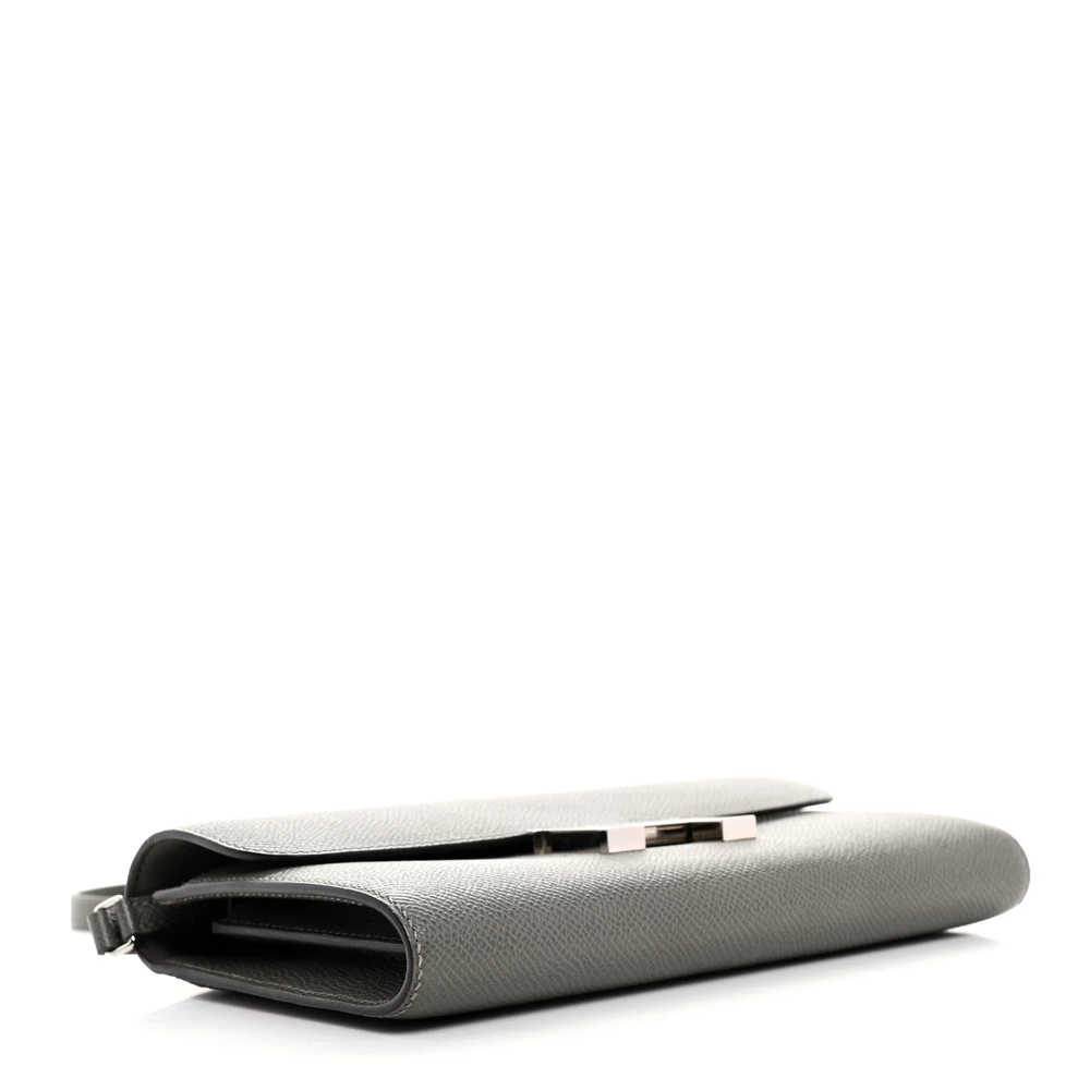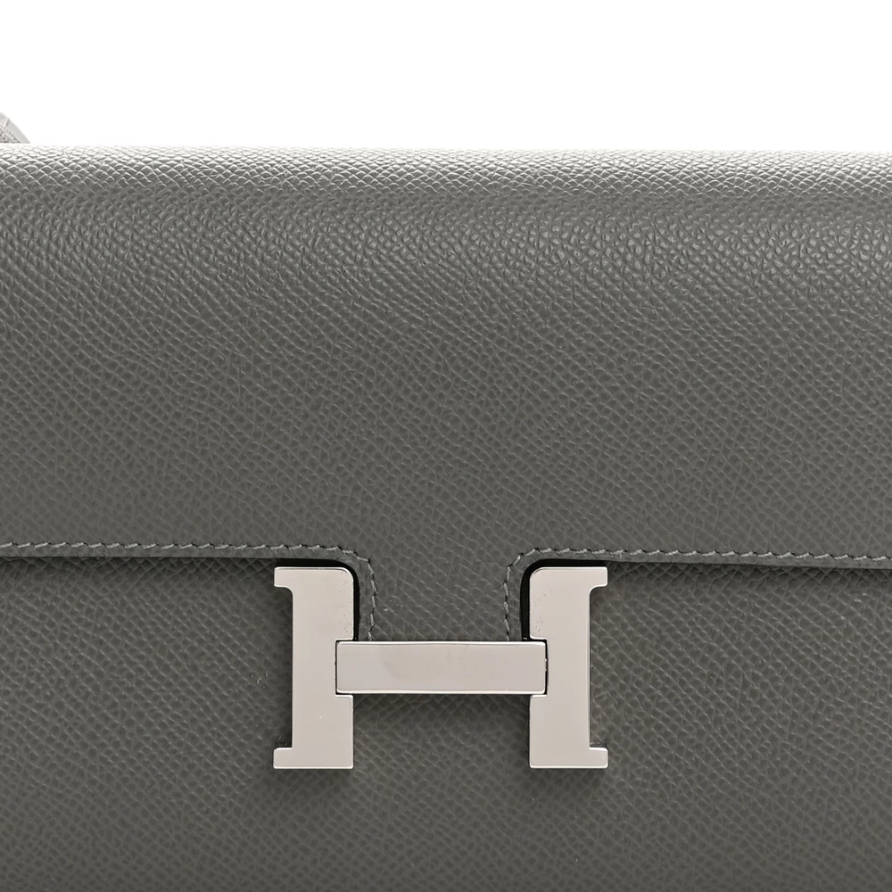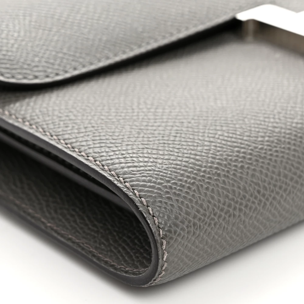 This Hermès Epsom Constance Long To Go Wallet in Gris Meyer is a sophisticated essential for those who appreciate timeless design. The neutral grey hue is versatile and elegant, perfectly complementing the structured Epsom leather. Featuring the signature Constance H clasp, it exudes classic Hermès luxury. Designed with an adjustable strap, it can be worn as a crossbody or used as a wallet. A refined choice for both casual and formal settings.