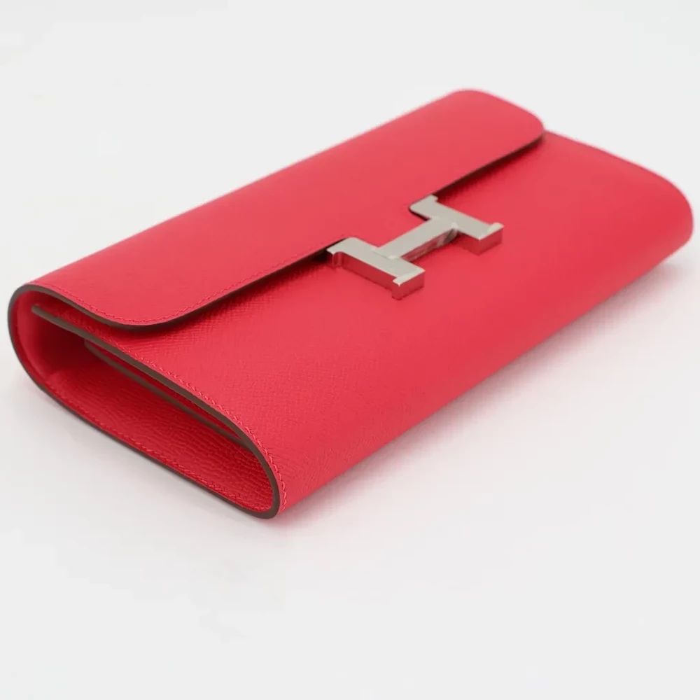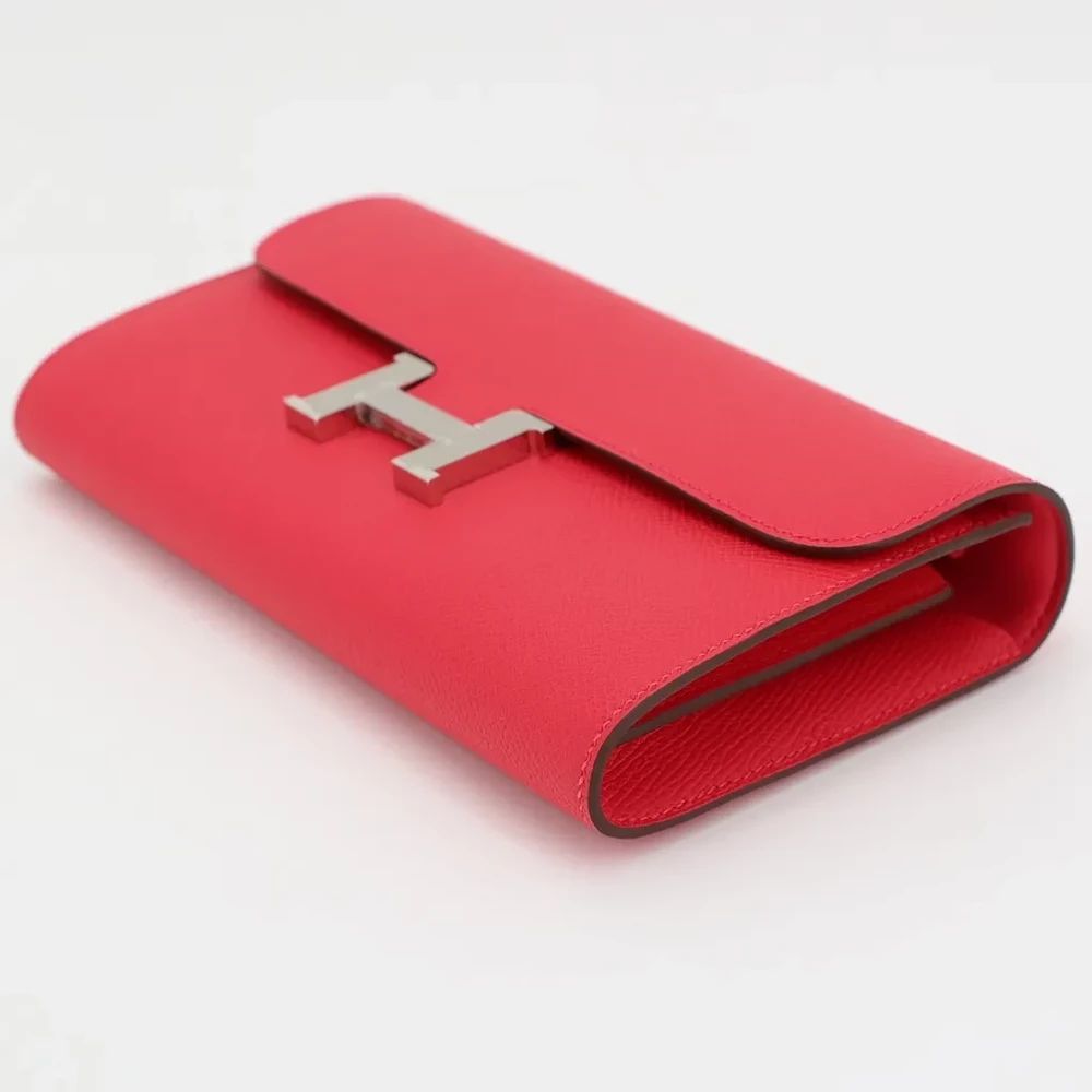 This Hermès Constance To Go long wallet is a bold and elegant statement piece, crafted from durable Epsom leather in the striking Rose Extreme (I6) shade. The vibrant pink hue is beautifully complemented by sleek palladium hardware, creating a modern yet timeless aesthetic. Stamped with a “W” for 2024, this wallet exemplifies Hermès’ renowned craftsmanship and sophisticated design. Measuring approximately 20.5cm in width and 11.5cm in height, it features a detachable 122cm shoulder strap, allowing for versatile styling as a crossbody or clutch. Accompanied by its original box, dustbag, shoulder strap, and receipt, this exquisite piece is available in Singapore, making it a must-have for collectors and luxury enthusiasts alike.