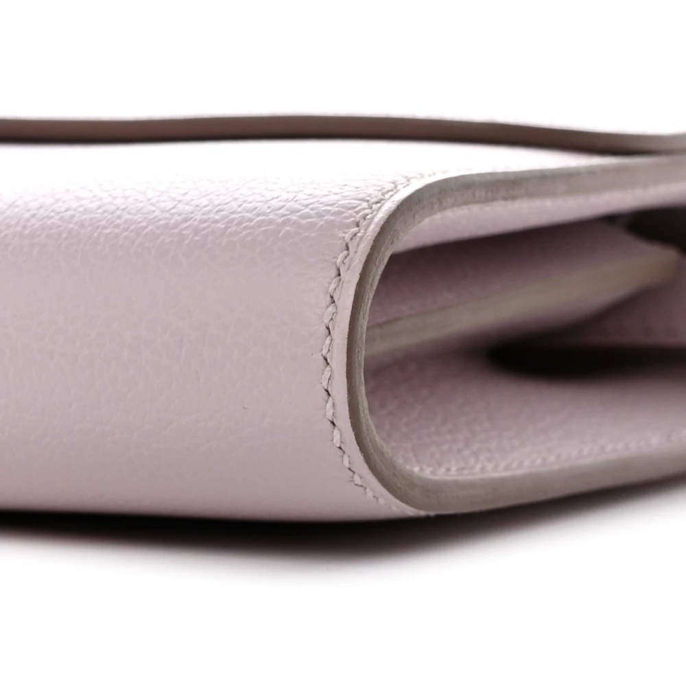 This Hermès Evercolor Constance Wallet To Go Mauve Pale is a delicate and sophisticated accessory in a soft pastel pink shade. The Evercolor leather offers a smooth and slightly grained texture, ensuring a refined aesthetic. The Wallet To Go design makes it a versatile piece with a removable strap. Palladium hardware complements its modern and elegant appeal. This Constance is a chic and stylish addition to any collection.