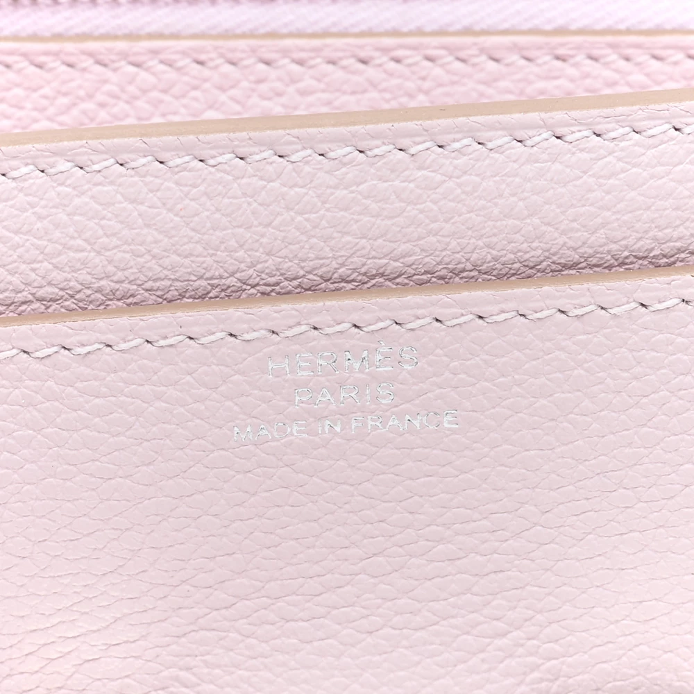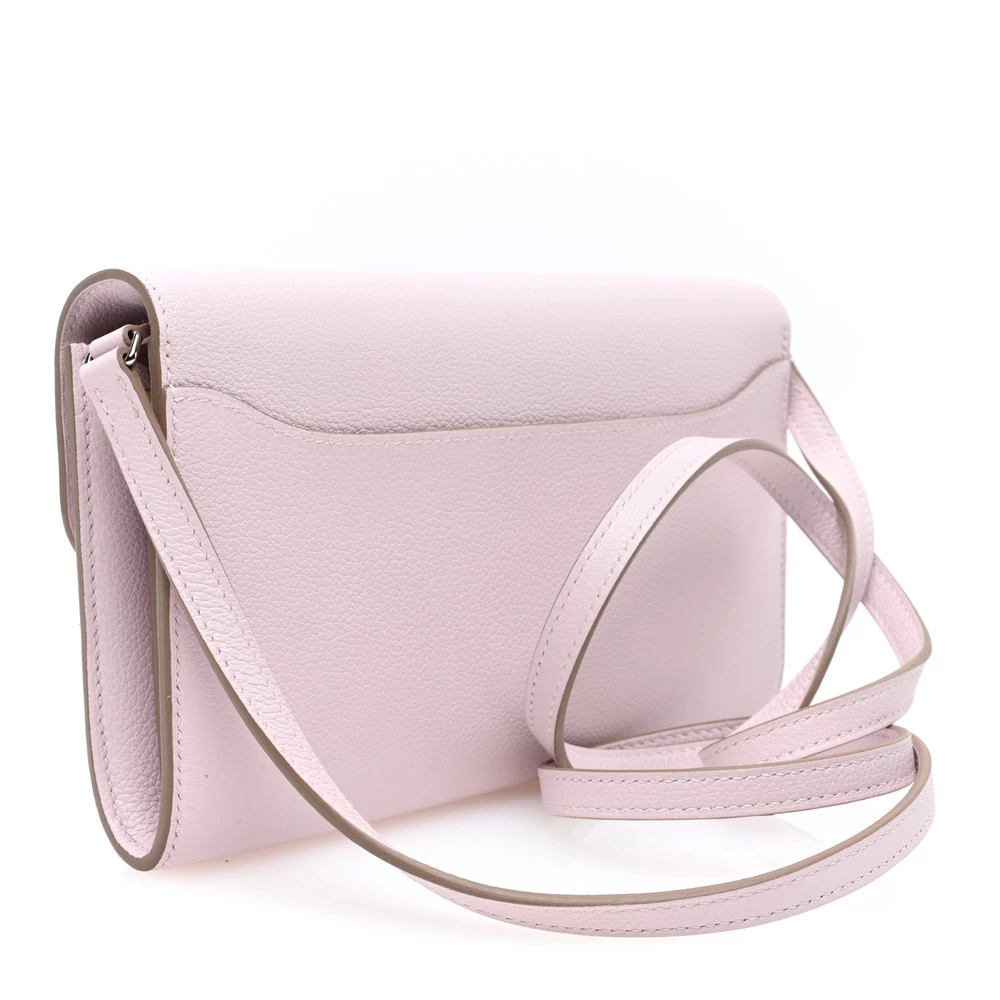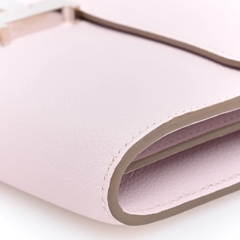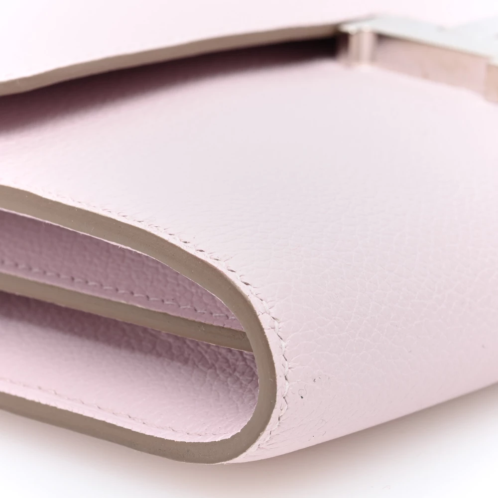 This Hermès Evercolor Constance Wallet To Go Mauve Pale is a charming and practical accessory in a soft pastel pink shade. The Evercolor leather provides a smooth, fine-grained texture, ensuring durability. The removable strap allows for versatile wear. Palladium hardware adds a sleek and modern touch. This Constance Wallet To Go is a stylish and functional luxury essential.
