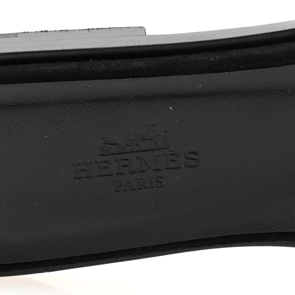 This Hermès Oran sandal in Black Suede & Goatskin with crystal embellishments is a glamorous take on a signature design. The shimmering crystals add a touch of sophistication, while the soft suede enhances its elegant appeal. Designed for effortless wear, it transitions seamlessly from day to evening. Whether paired with casual chic outfits or formal ensembles, this sandal is a luxurious statement piece.