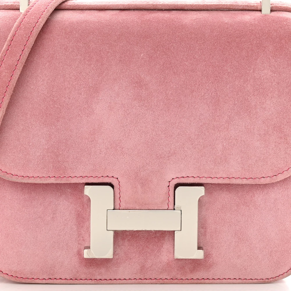 This Hermès Veau Doblis Constance 18 in Rose Indienne is a rare and luxurious handbag in a rich, deep pink hue. The Veau Doblis suede leather adds a unique, velvety texture that enhances its refined appeal. The Constance 18’s compact yet structured design makes it perfect for both casual and formal occasions. The signature H clasp adds a gleaming touch of elegance. This Constance is a coveted and sophisticated choice for those who appreciate soft, tactile luxury.