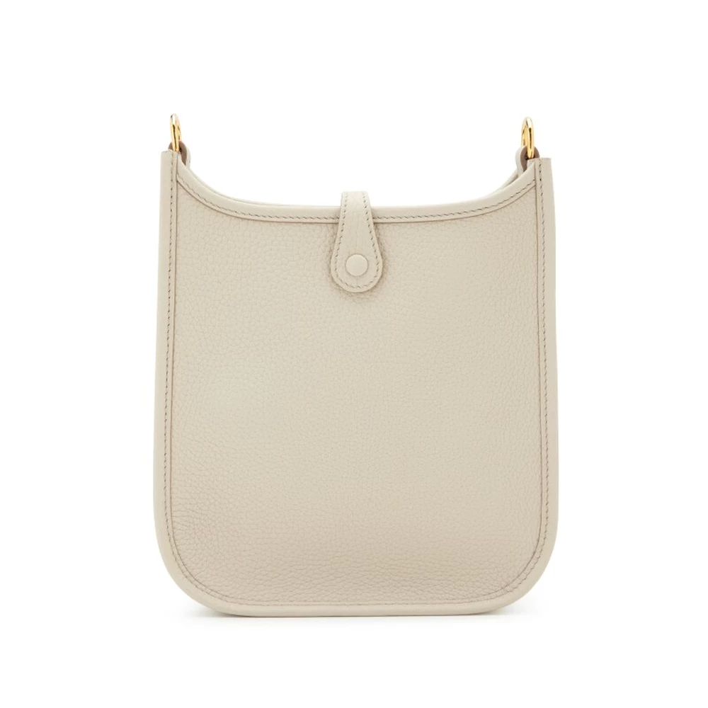 This Hermès Béton Clémence Evelyne TPM 16 with Gold Hardware is a chic crossbody bag in a sophisticated light gray shade. The grained Clémence leather provides durability, while the gold hardware adds warmth and elegance. The perforated “H” logo and hands-free design make it a stylish yet functional accessory.