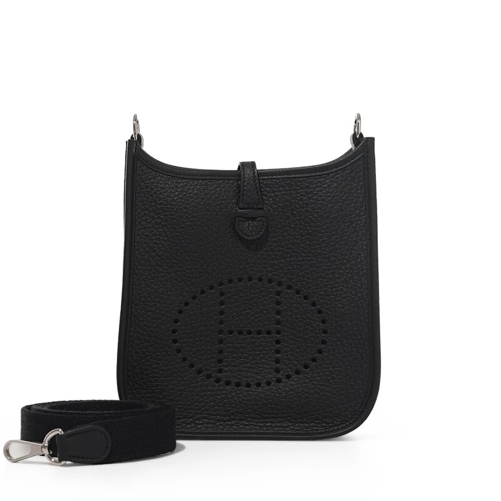 This Hermès Black Clémence Mini Evelyne II TPM 16 with Palladium Hardware is a timeless and versatile crossbody bag in deep black. The soft Clémence leather ensures a supple yet structured look, while the palladium hardware keeps the aesthetic sleek and modern. The perforated “H” logo and petite size make it a stylish and functional option.