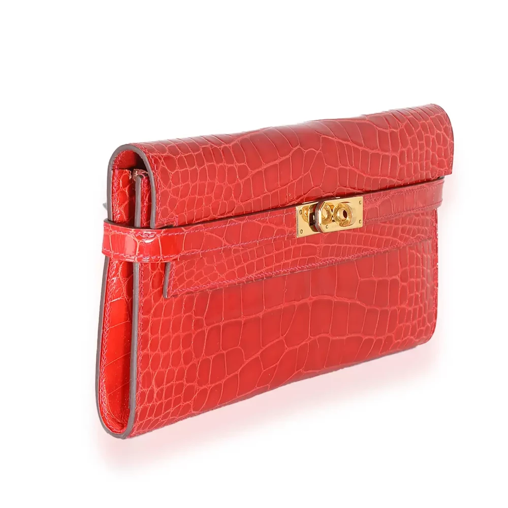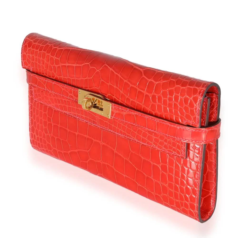 This Hermès Geranium Alligator Mississippiensis Kelly Wallet with Gold Hardware is a bold and luxurious statement piece. The vibrant Geranium shade in exotic alligator leather creates a striking visual impact, while the Kelly turn-lock closure in gold adds an elegant finishing touch. A true collector’s piece for those who appreciate rare and exquisite craftsmanship.