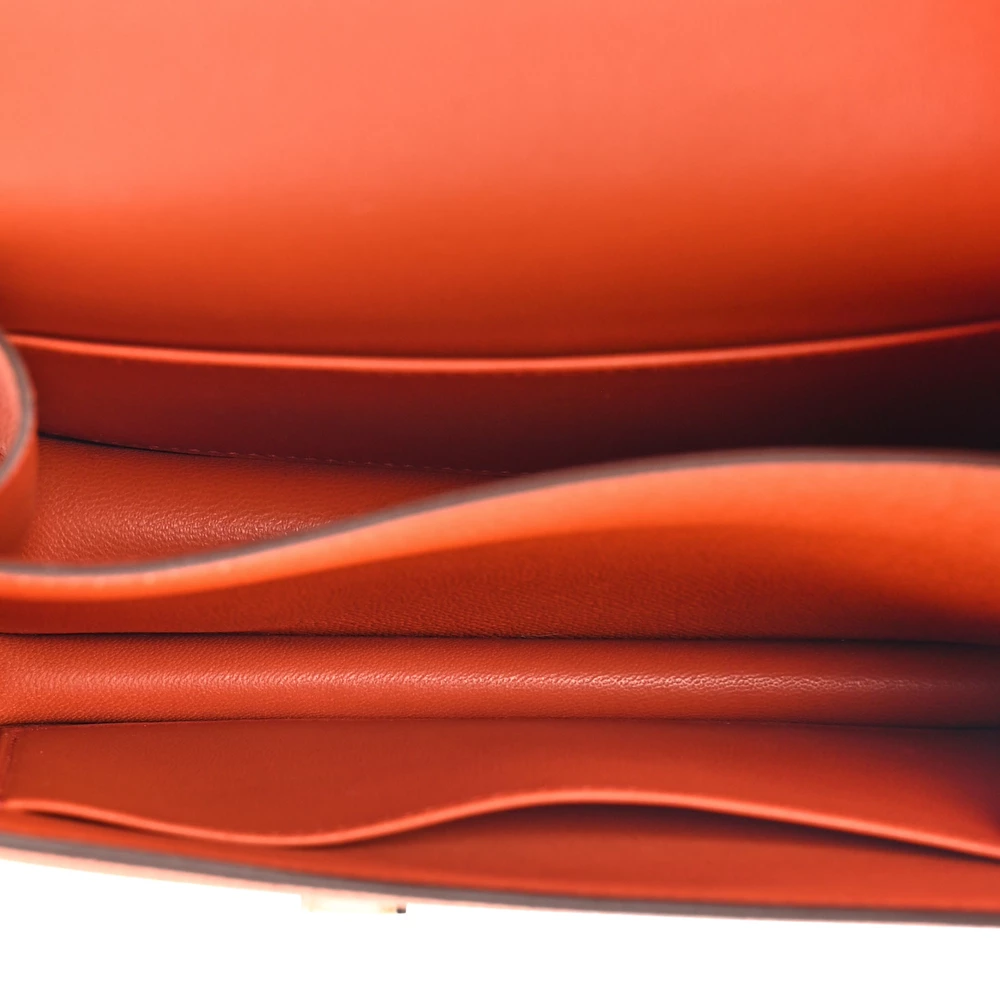 This Hermès Epsom Enamel Constance 18 Terre Battue Rose Confetti is a playful and structured handbag in a bold combination of warm terracotta and soft pink. The Epsom leather offers a polished, scratch-resistant finish, ensuring durability. The enamel H clasp adds a refined and sophisticated touch. This Constance is a striking blend of elegance and modernity.