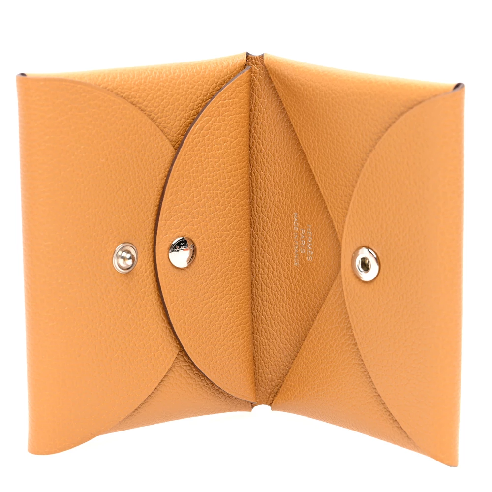 This Hermès Epsom Calvi Duo Card Case in Biscuit is a refined accessory that blends practicality with timeless elegance. Crafted from richly grained Epsom calfskin leather in a soft light brown hue, it exudes understated sophistication. The sleek design opens with a snap closure to reveal an origami-style folded pocket and a dedicated coin pocket, offering an elegant solution for organizing essentials. Compact and versatile, this card case showcases Hermès’ commitment to exceptional craftsmanship and classic style.