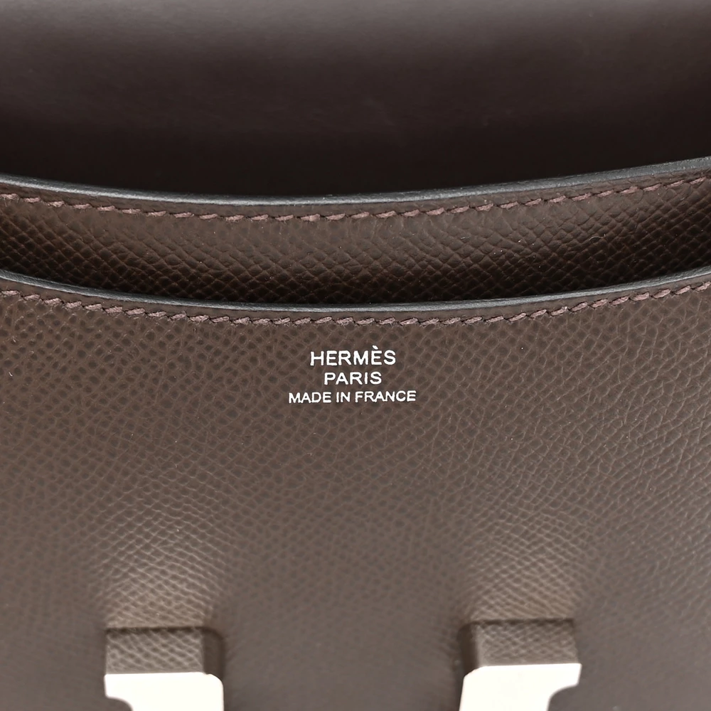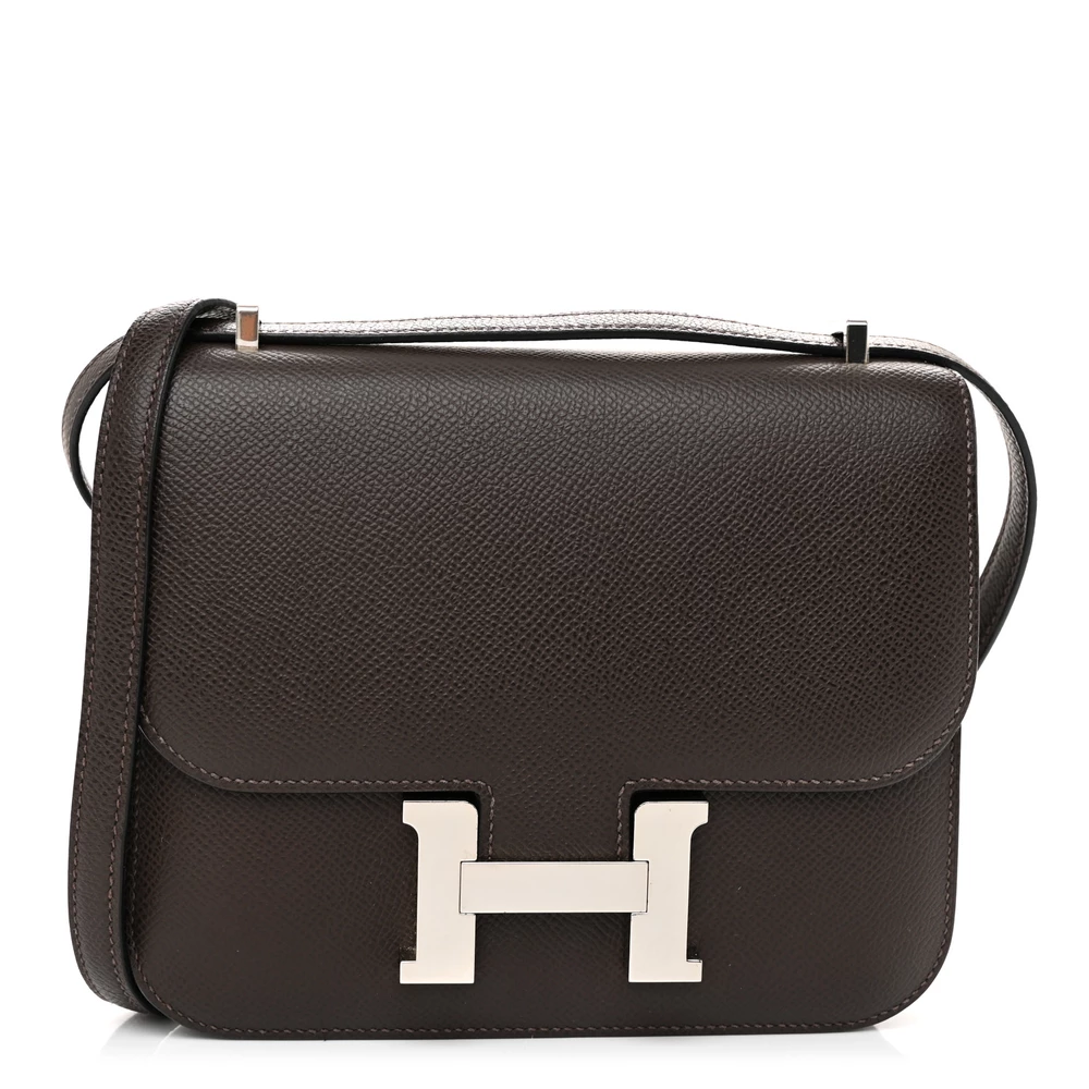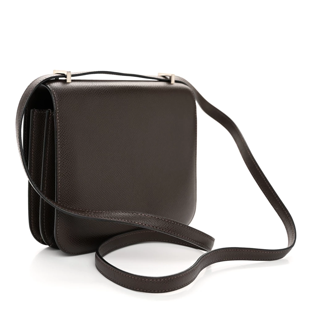 This Hermès Epsom Constance 18 Ebene is a refined and elegant handbag in a deep brown shade. The Epsom leather provides a structured, scratch-resistant finish, ensuring lasting durability. The compact 18cm size makes it a sophisticated and practical choice. Gold hardware enhances its timeless and luxurious appeal. This Constance is perfect for those who appreciate classic tones with a modern edge.