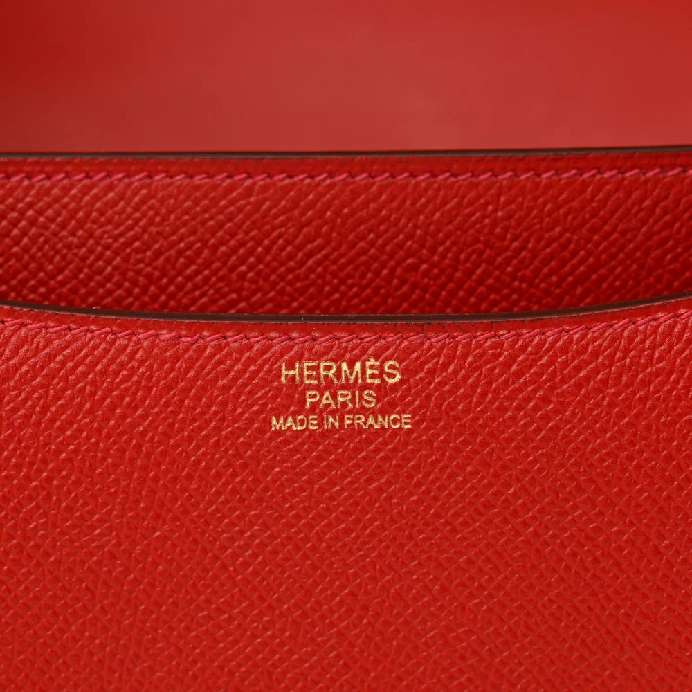 This Hermès Epsom Constance 24 Rouge Casaque is a bold and structured handbag in a deep red shade. The Epsom leather provides a scratch-resistant and polished finish, maintaining its crisp silhouette. The 24cm size offers ample space while preserving its sleek aesthetic. Palladium hardware enhances its modern and sophisticated appeal. This Constance is a refined and powerful luxury piece.