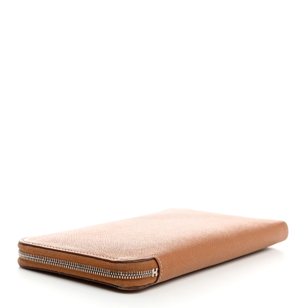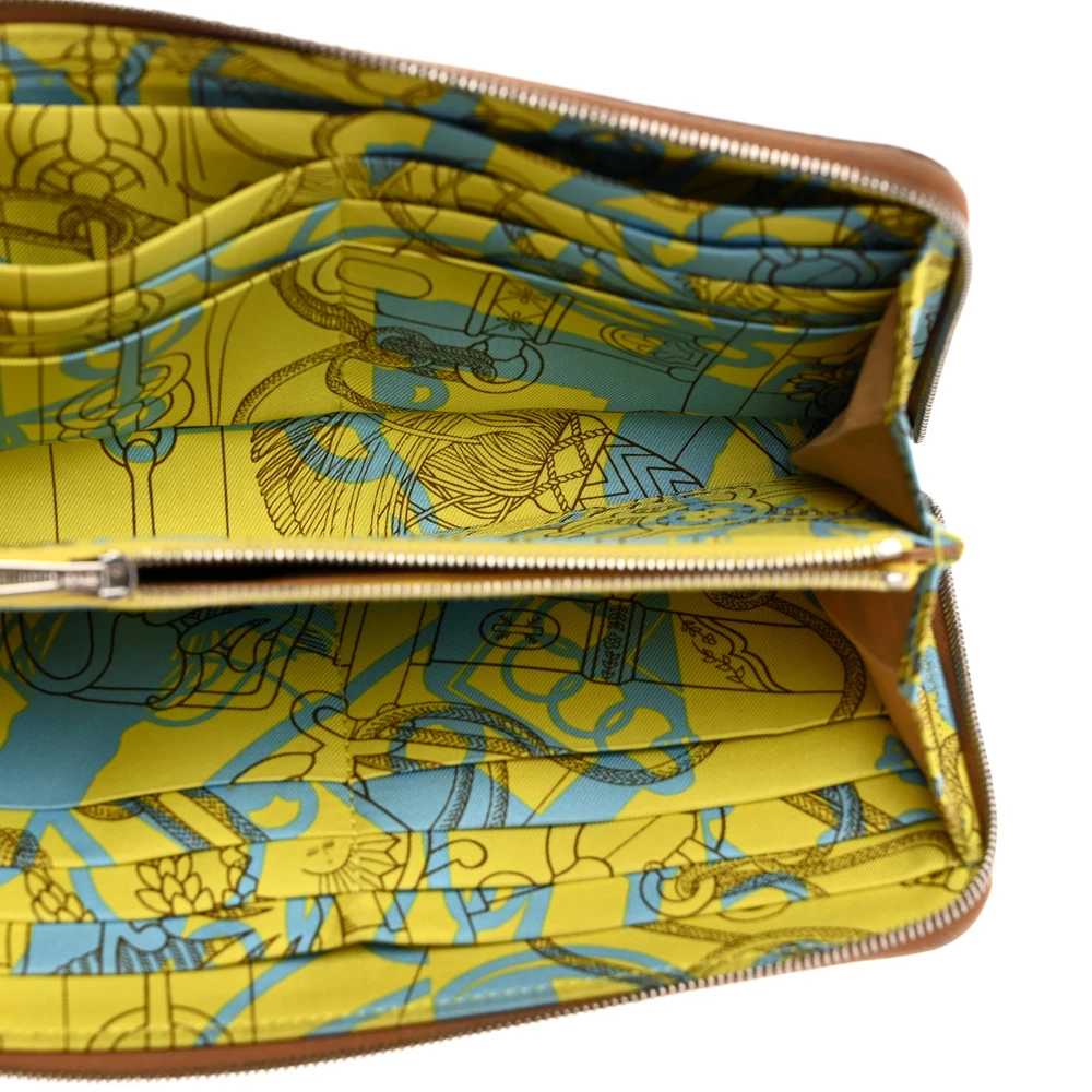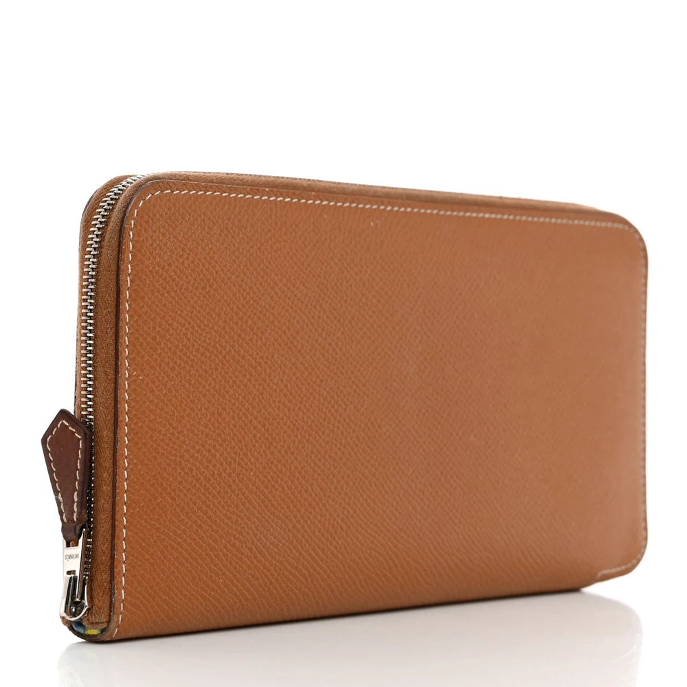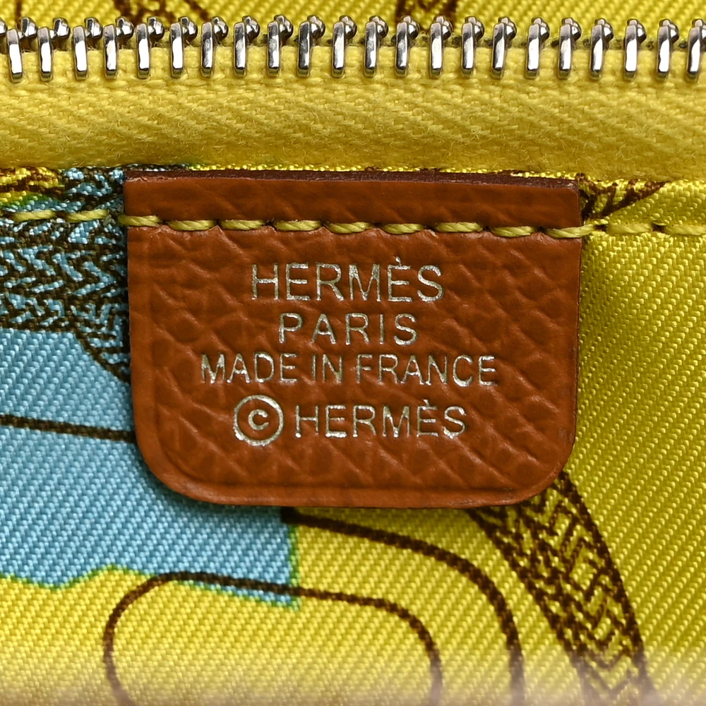 This Hermès Silk’In Wallet in Gold is a perfect fusion of classic elegance and modern design. Crafted from Epsom leather, its structured silhouette opens to reveal a vibrant Hermès silk lining, adding an element of surprise and sophistication. The zip-around closure ensures secure storage for cards and essentials, making it a refined yet functional accessory.