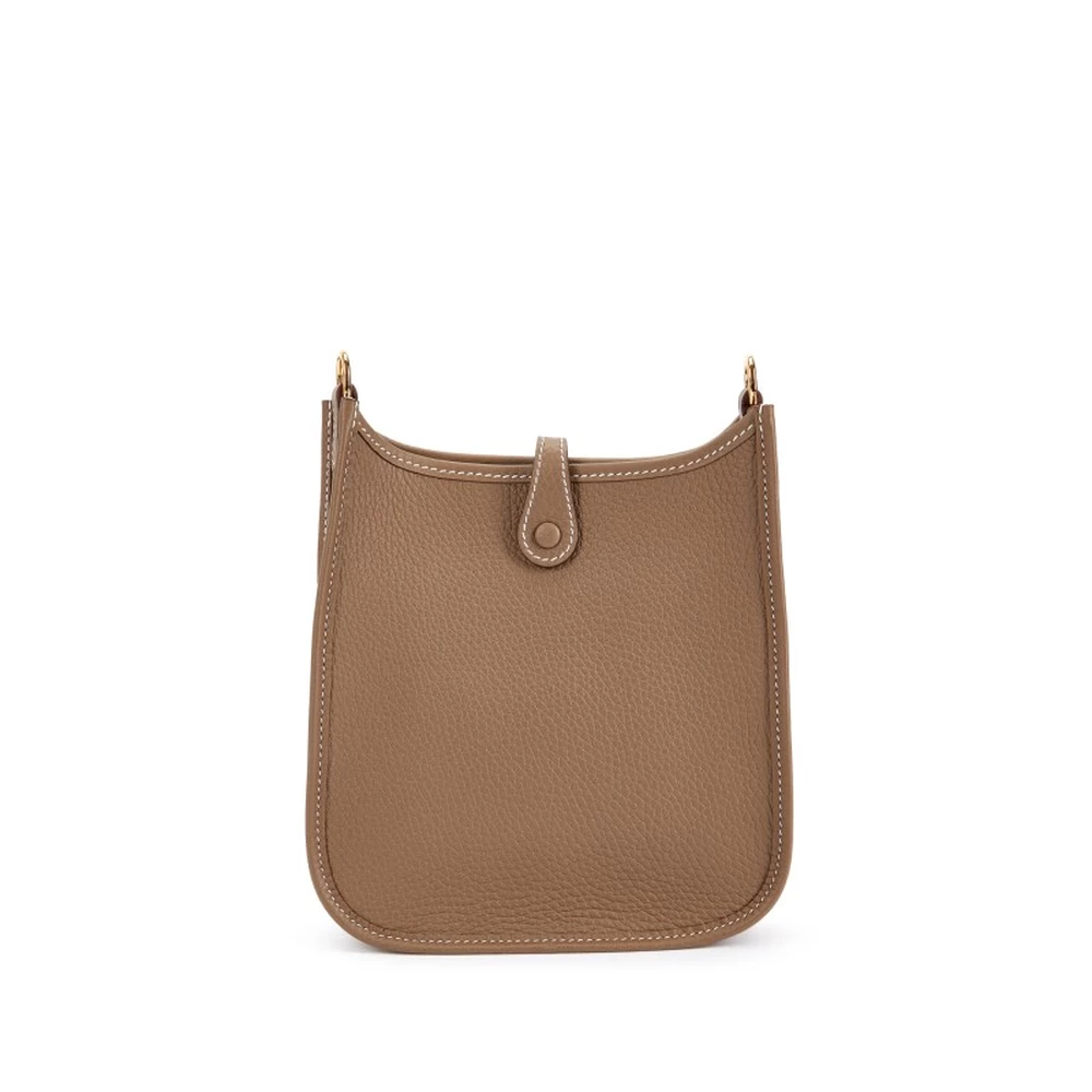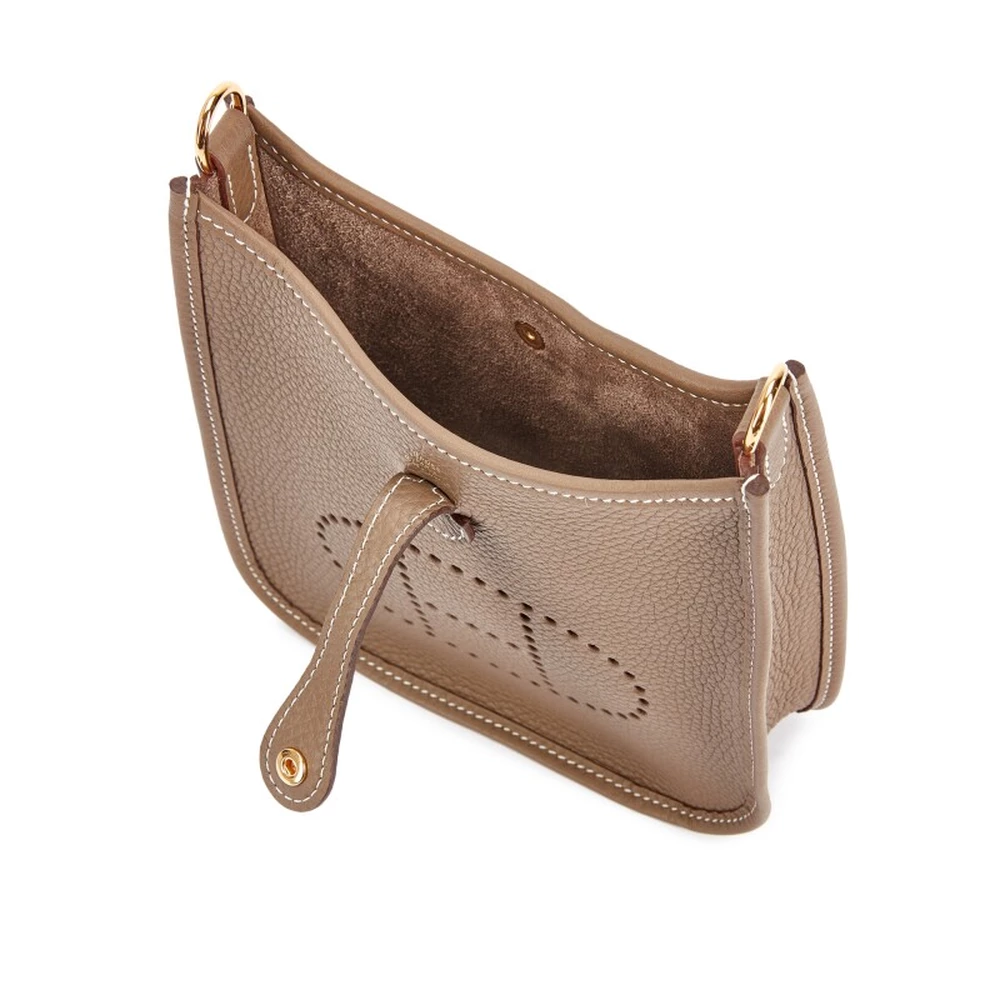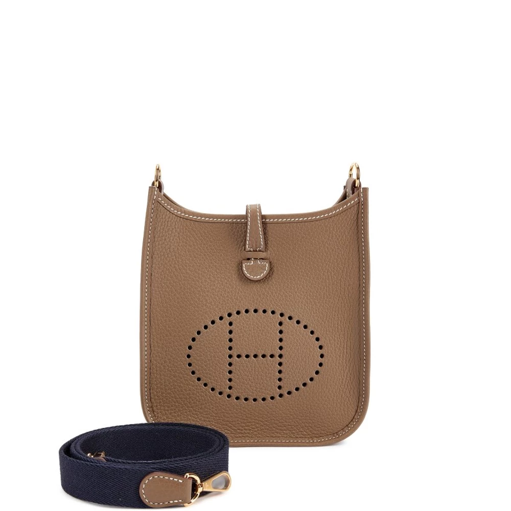 This Hermès Etoupe Clémence Mini Evelyne II TPM 16 with Gold Hardware is a classic and sophisticated crossbody bag in a versatile taupe hue. The soft Clémence leather is enhanced by white contrast stitching, while the gold hardware adds a refined touch. The perforated “H” logo and adjustable strap make it an effortless luxury essential.