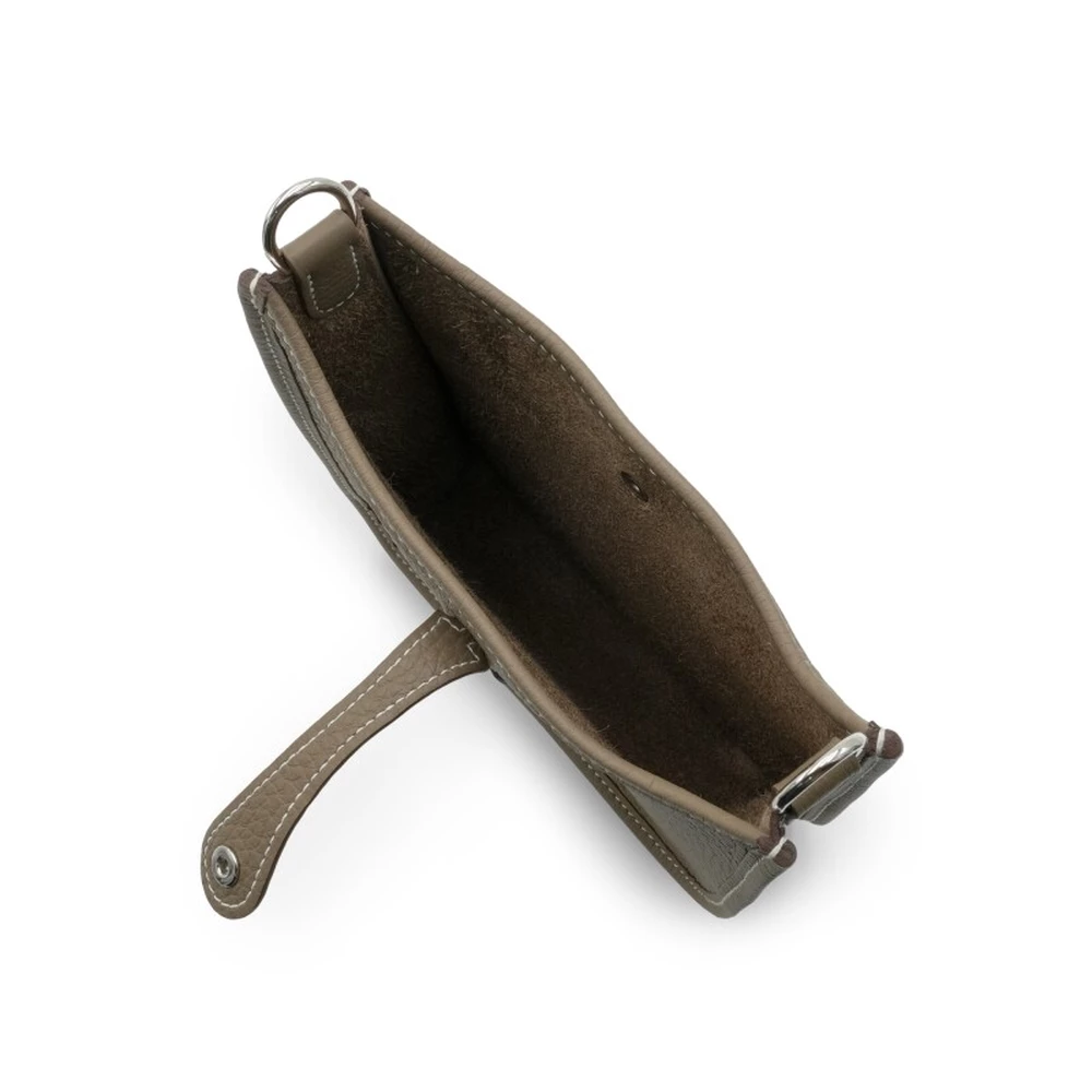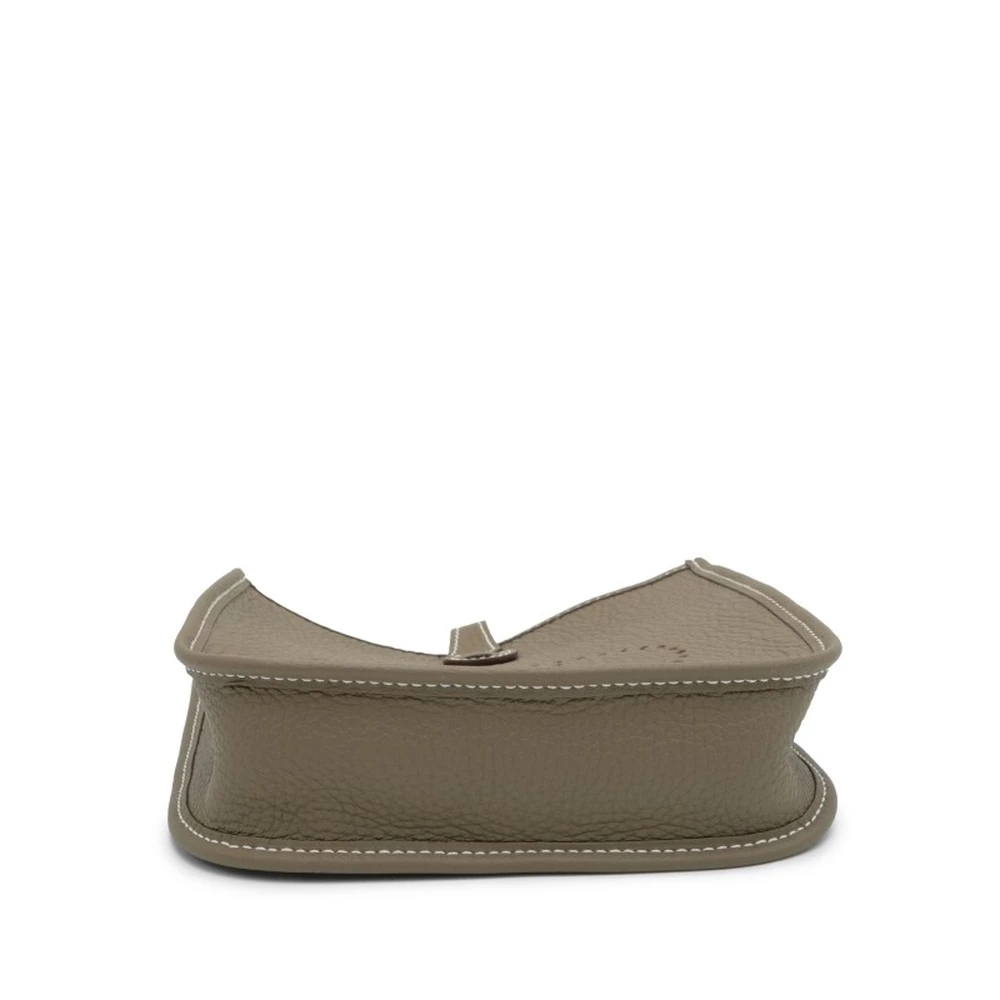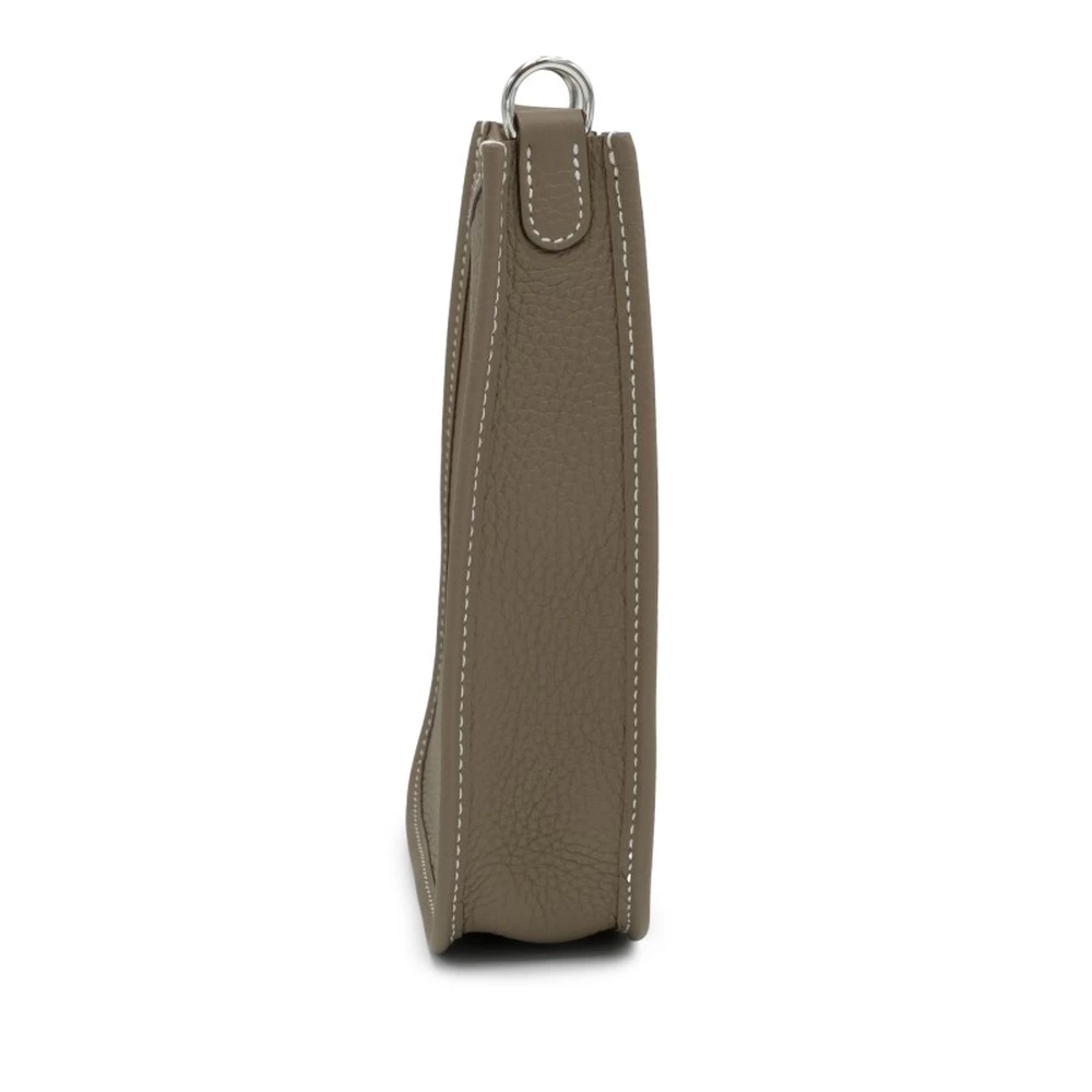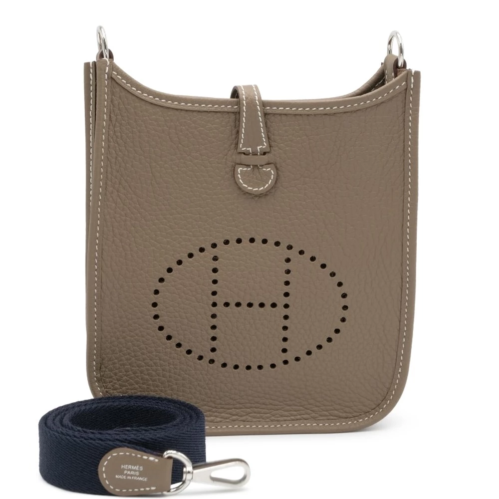 This Hermès Etoupe Clémence Mini Evelyne II TPM 16 with Palladium Hardware is a timeless and sophisticated handbag in a neutral taupe shade. The soft Clémence leather is enhanced by white contrast stitching, while the palladium hardware adds a cool, contemporary finish. The perforated “H” logo and adjustable strap make it a refined everyday essential.