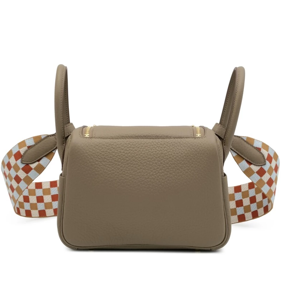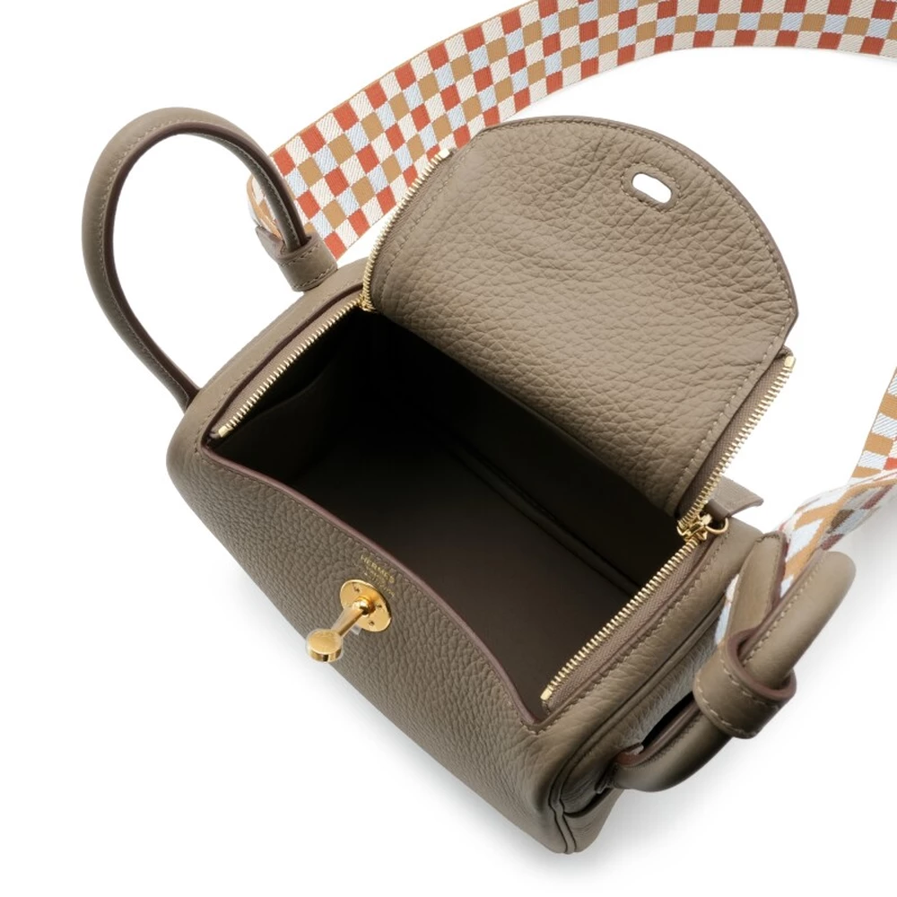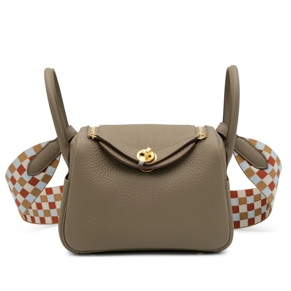 This Hermès Etoupe Clémence Mini Lindy 20 with Gold Hardware is a refined and compact handbag in a classic taupe shade. The supple Clémence leather enhances its relaxed yet chic silhouette, while the gold hardware offers a warm and luxurious contrast. Its small size makes it an effortless everyday companion.