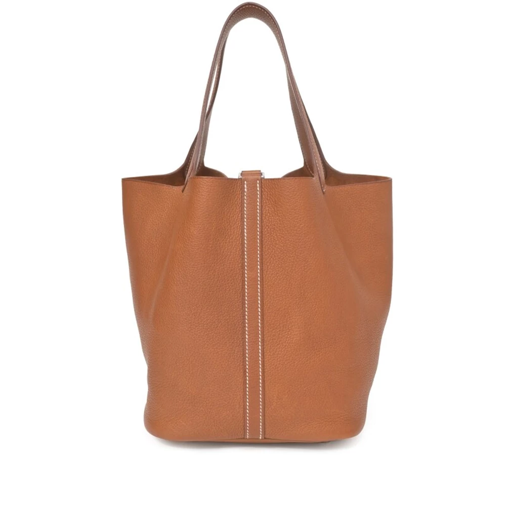 This Hermès Fauve Barenia Picotin Lock 22 with Palladium Hardware is a timeless and heritage-inspired handbag in a warm, golden-brown shade. The Barenia leather, known for its smooth finish and ability to develop a rich patina, adds an air of classic luxury. The larger 22 cm size offers practicality without compromising on elegance. This Picotin is a refined and enduring investment piece.