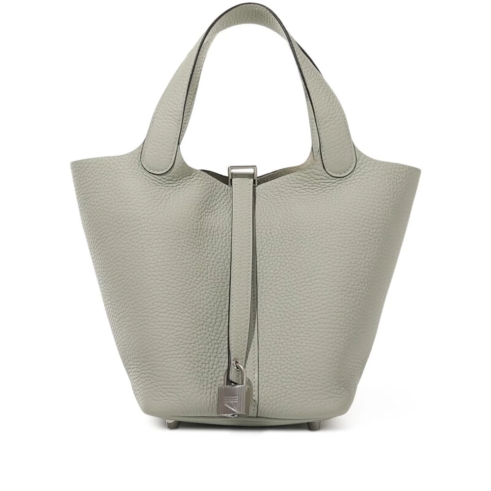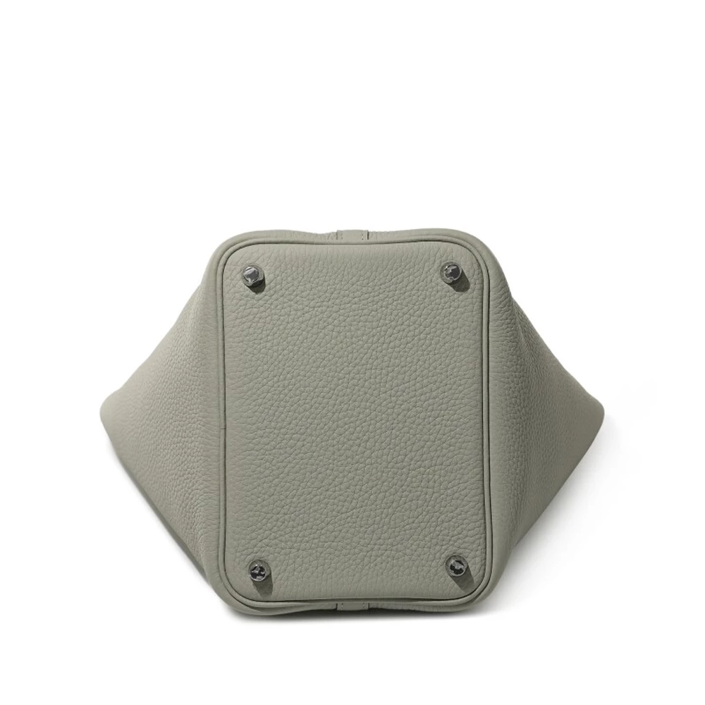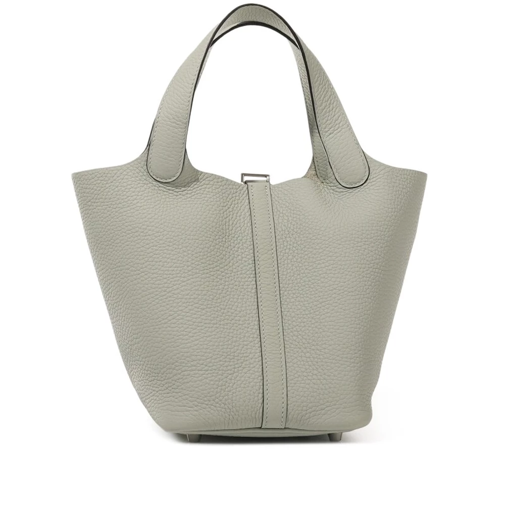 This Hermès Gris Neve Clémence Picotin Lock 18 with Palladium Hardware is a refined and versatile handbag in a soft, light gray hue. The Clémence leather offers a supple and relaxed structure, making it an effortlessly chic choice for everyday wear. The Picotin Lock’s signature open-top design is complemented by the palladium-plated padlock, adding a touch of understated luxury. The minimalist silhouette ensures timeless appeal. This Picotin is a subtle yet sophisticated staple for any collection.