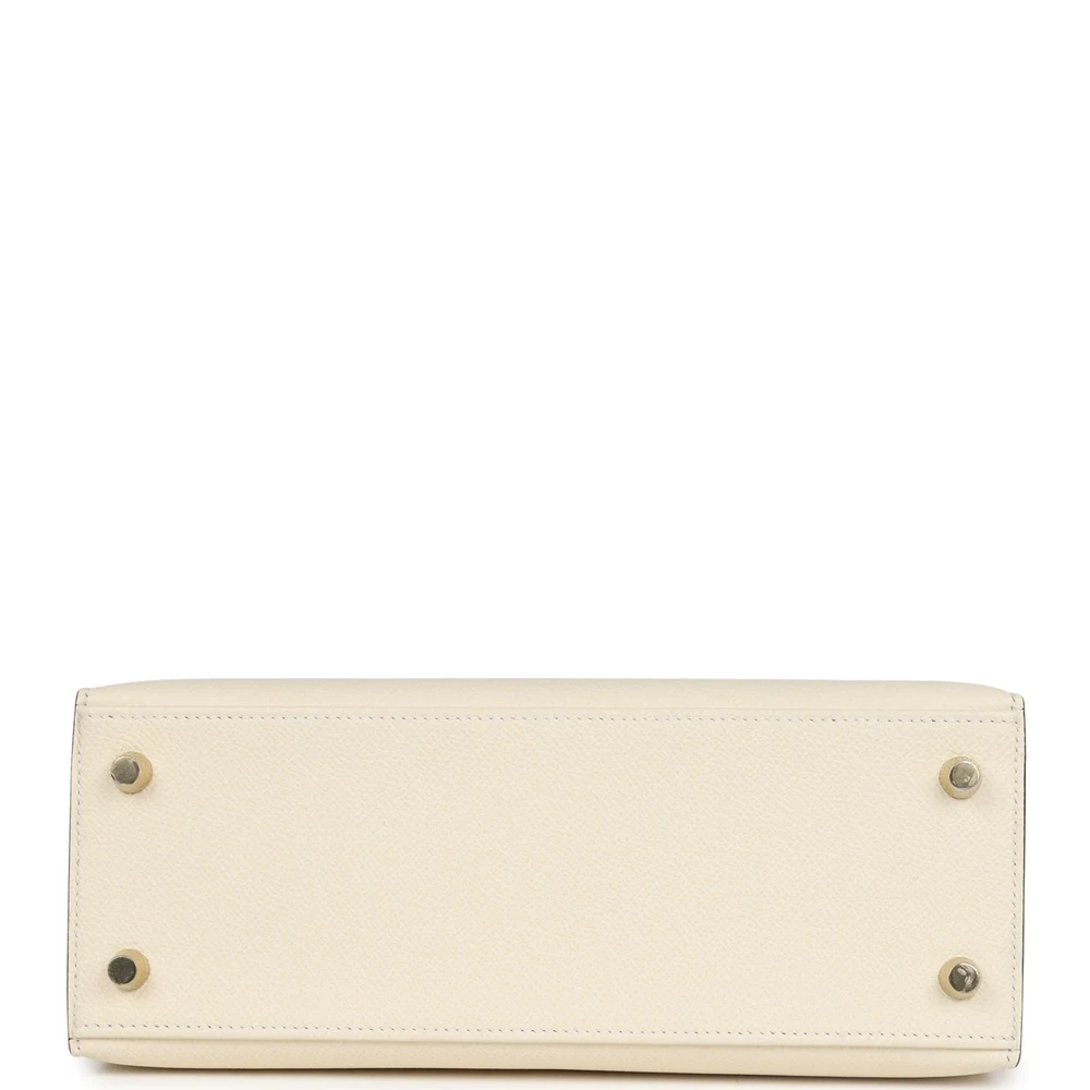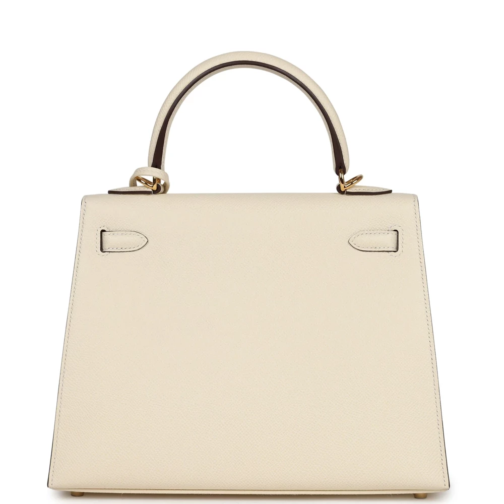 This Hermès Kelly Sellier 25 is crafted from Nata Epsom leather with gold hardware. It features tonal stitching, a front flap with two straps and a toggle closure, a clochette with lock and two keys, a single rolled handle, and a removable shoulder strap. The interior is lined with Nata chèvre leather and includes one open pocket on the back wall. The soft Epsom leather and warm gold hardware make this Kelly an elegant choice. The 25 cm size is perfect for day-to-night use. The removable shoulder strap adds comfort for on-the-go moments.