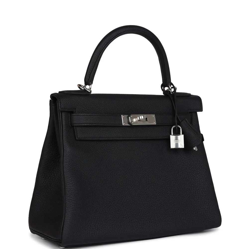 This Hermès Kelly Retourne 28 in Black is a luxurious and sophisticated choice. Crafted from durable Togo leather, it features a slouchy silhouette. The Palladium hardware adds a modern touch. Its deep black hue is perfect for adding sophistication to any outfit. The spacious interior offers practicality and style. A must-have for collectors. This bag is a true Hermès treasure.