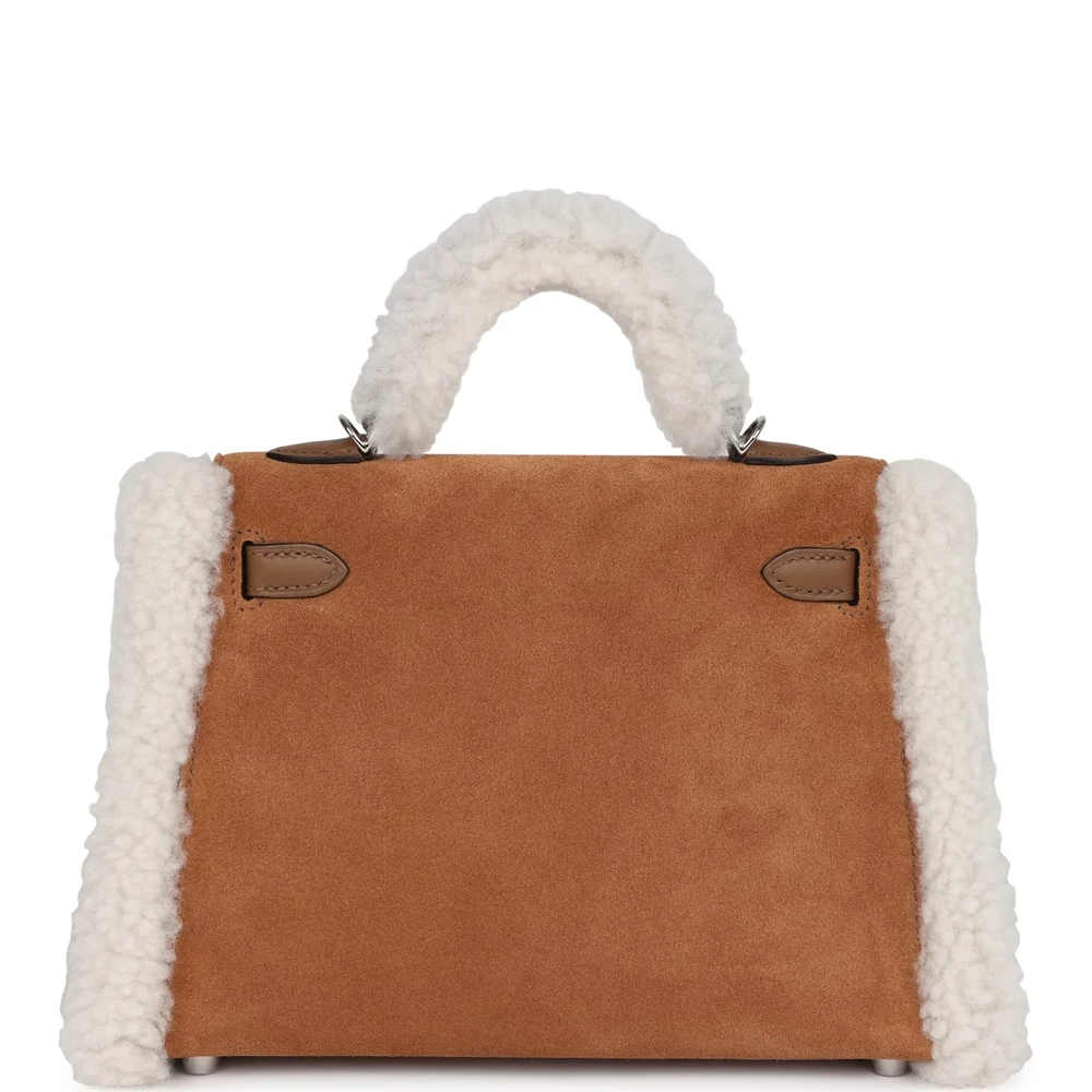 This Hermès Teddy Kelly 20 in Chamois is a luxurious and cozy statement piece. Crafted from shearling and Swift leather, it features a unique and soft texture. The Palladium hardware adds a modern touch. Its neutral beige hue is perfect for adding warmth to any outfit. The compact size makes it ideal for minimalists. A must-have for collectors. This bag is a true Hermès treasure.