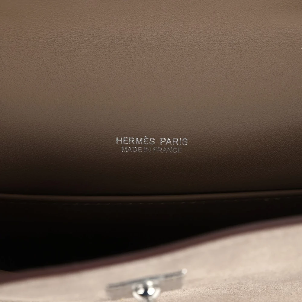 This Hermès Teddy Kelly 20 in Gris Caillou and Etoupe is a unique and cozy statement piece. Crafted from Swift leather, it features a soft and luxurious texture. The Palladium hardware adds a modern touch. Its neutral gray and beige hues are perfect for adding warmth to any outfit. The compact size makes it ideal for minimalists. A must-have for collectors. This bag is a true Hermès treasure.