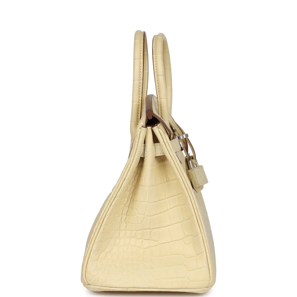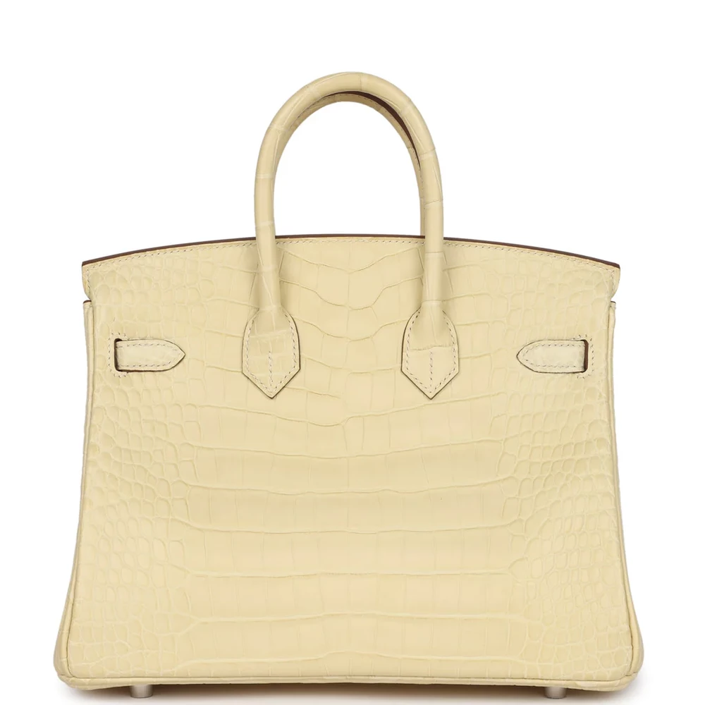 This Hermès Birkin is crafted from Vanille Matte Mississippiensis Alligator leather with palladium hardware, exuding luxury and style. It features tonal stitching and a front strap, along with two straps and a center toggle closure for secure fastening. The clochette with a lock and two keys enhances the bag’s security, while double rolled handles make it comfortable to carry. Inside, the bag is lined with Vanille Chevre leather for a soft, elegant touch. It includes one zip pocket with an Hermès engraved zipper pull and an open pocket on the opposite side for easy organization.